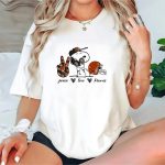 Celebrate your love for the Cleveland Browns with our Peace Love Cleveland Browns Snoopy Football Fan T-Shirt! This fan-made design combines the beloved Peanuts character Snoopy with a passion for football, making it the perfect choice for die-hard fans and casual wearers alike. Ideal for game days, themed events, or just lounging at home, this shirt offers comfort and style for every occasion, all while showcasing your team spirit in a unique way.