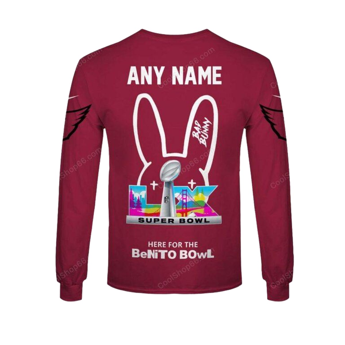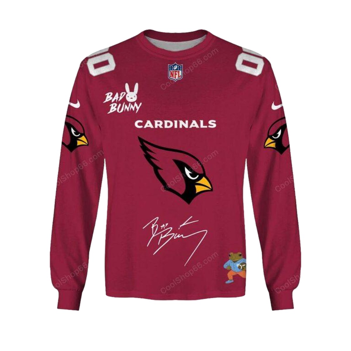 Elevate your streetwear game with our Personalized Arizona Cardinals Bad Bunny Super Bowl All-Over Printed Sweatshirt. This unique piece is designed for fans who want to showcase their love for both the Arizona Cardinals and the vibrant energy of Bad Bunny. Perfect for casual outings, game day celebrations, or cozy evenings at home, this sweatshirt combines style and comfort in a way that stands out from the crowd.