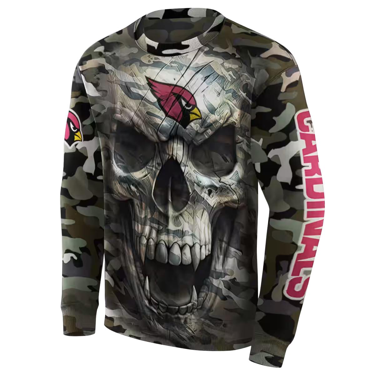 Introducing the Personalized Arizona Cardinals Camo Skull AOP Sweatshirt, a must-have for any fan looking to showcase their team spirit with a unique twist. Perfect for game days, casual outings, or just lounging at home, this sweatshirt combines style and comfort, making it an ideal addition to your streetwear collection. Its striking all-over print design stands out, giving you a modern edge that sets you apart.
