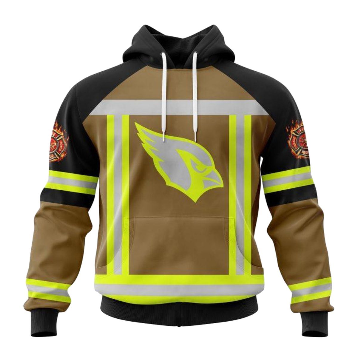 Introducing the Personalized Arizona Cardinals Firefighter Uniform All-Over Print Hoodie, a perfect blend of style and comfort for fans and firefighters alike. This unique hoodie is ideal for casual outings, game days, or cozy evenings at home, providing warmth and a touch of team spirit. Its all-over print design makes it a standout piece that showcases your love for both the Arizona Cardinals and the brave firefighters who serve our communities.