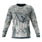 Show your love for the Arizona Cardinals and honor US Air Force Veterans with this unique all-over printed sweatshirt. Perfect for fans and supporters alike, this cozy piece is ideal for casual outings, game days, or simply lounging at home. Its striking camo design not only stands out but also pays tribute to those who serve, making it a meaningful addition to any streetwear collection.