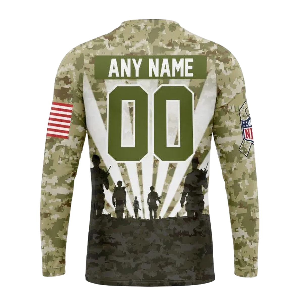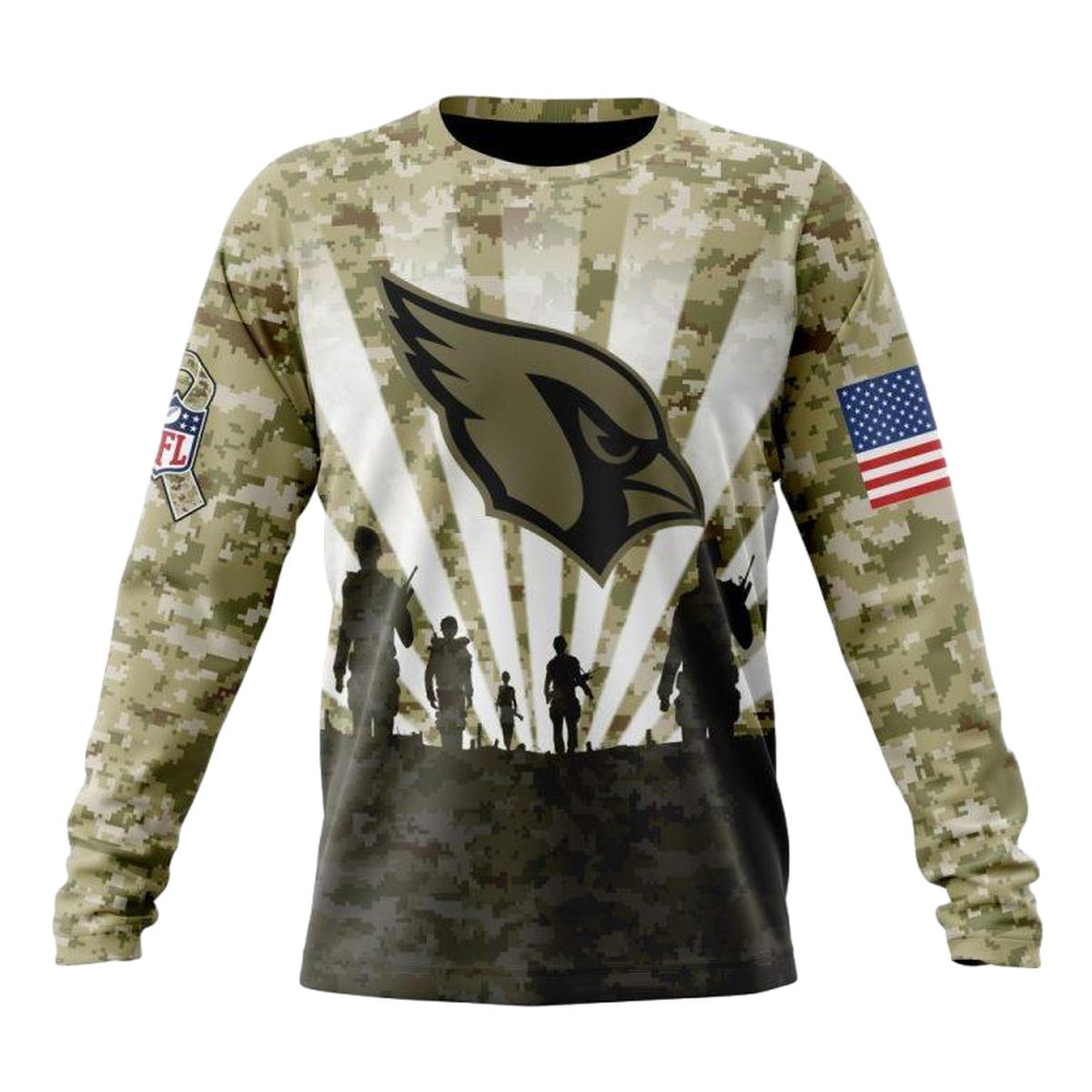 Show your support with the Personalized Arizona Cardinals Honor Veterans And Families Camo AOP Sweatshirt, a perfect blend of comfort and style for any fan. Ideal for casual outings, lounging at home, or hitting the gym, this unique sweatshirt features an all-over print that stands out while honoring a significant cause. Its relaxed fit and modern design make it a must-have addition to your streetwear collection.