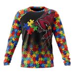 Embrace your passion and show your support with our Personalized Arizona Cardinals Logo In My Heart Autism Awareness AOP Sweatshirt. Designed for those who value comfort and style, this sweatshirt is perfect for casual outings, workouts, or cozy days at home. Its all-over print not only showcases your team spirit but also spreads awareness for a great cause, making it a unique addition to any streetwear wardrobe.