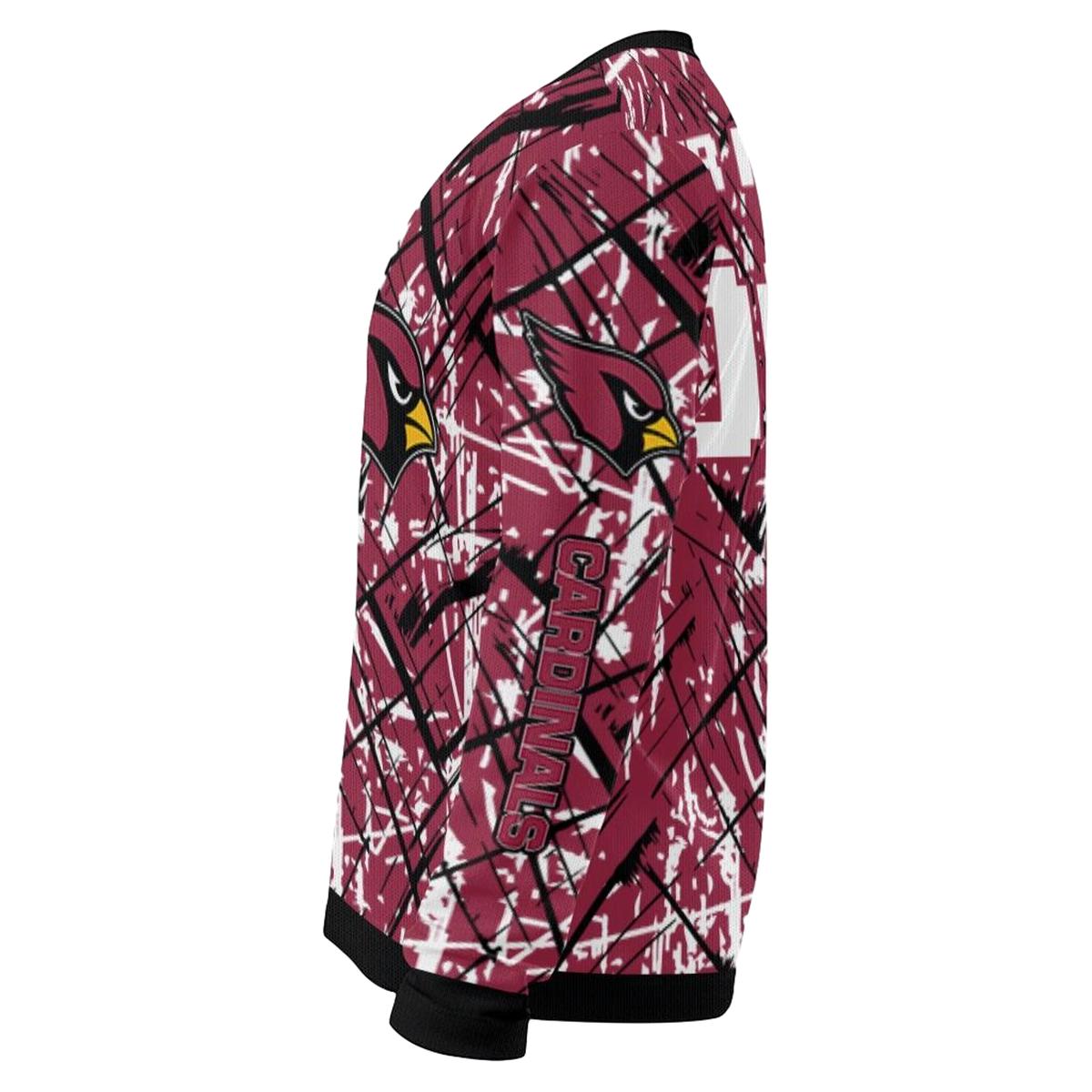 Introducing the Personalized Arizona Cardinals Streak Overlay Red AOP Sweatshirt, the perfect addition for any die-hard fan looking to showcase their team spirit in style. Designed for both men and women, this sweatshirt is ideal for game days, casual outings, or simply lounging at home. Its striking design and modern fit make it a standout piece in your streetwear wardrobe.