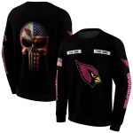 Unleash your team spirit with our Personalized Arizona Cardinals US Flag Punisher Skull Black AOP Sweatshirt, designed for die-hard fans who want to showcase their loyalty in style. Perfect for game days, casual outings, or lounging at home, this sweatshirt combines comfort with a bold graphic that makes a statement.