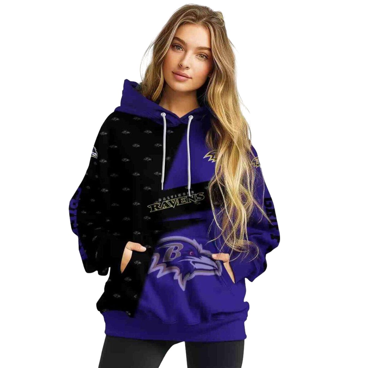 Embrace your love for the Baltimore Ravens with our Personalized Baltimore Ravens Abstract Shape Purple Black All-Over Print Hoodie. Designed for both men and women, this relaxed fit hoodie is perfect for game days, casual outings, or cozying up at home. Its unique all-over print captures the spirit of the Ravens, making it a standout piece in any fan’s wardrobe.
