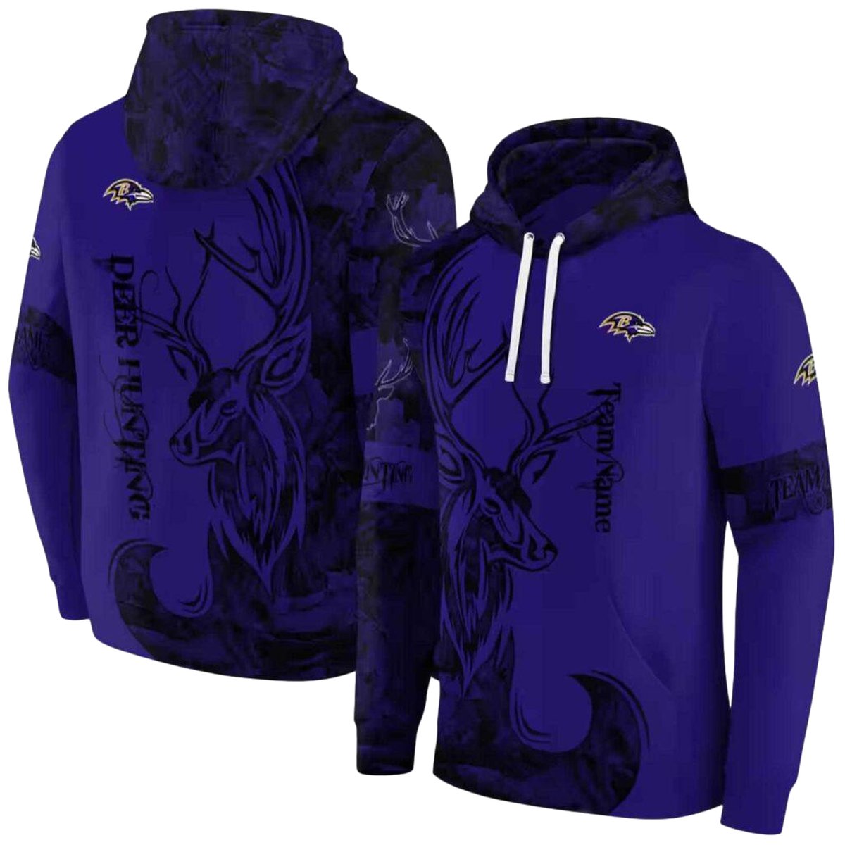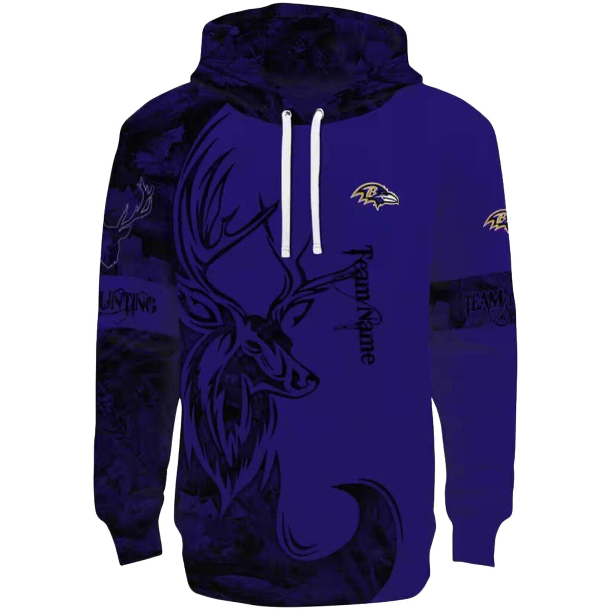 Personalized Baltimore Ravens Deer Silhouette Purple AOP Hoodie