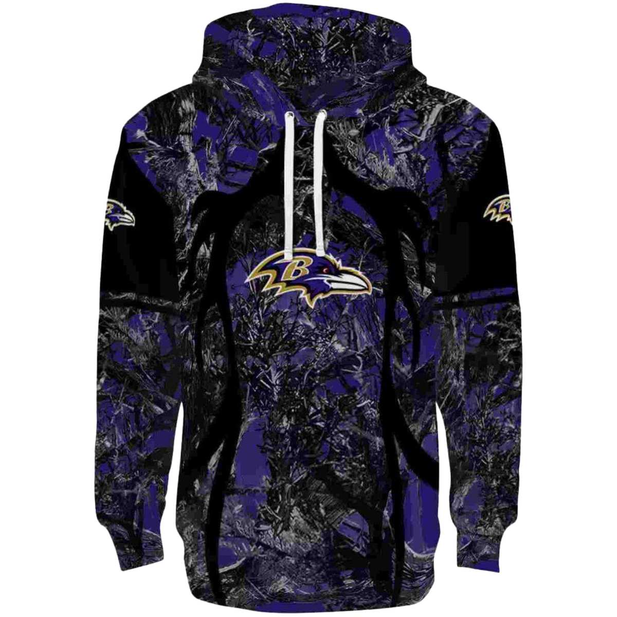 Embrace your team spirit with our Personalized Baltimore Ravens Hunting Theme Purple Black All-Over Hoodie! Perfect for devoted fans and outdoor enthusiasts alike, this hoodie combines style and functionality, making it an ideal choice for casual outings or lively game days. Its unique graphic design showcases your passion for the Ravens while providing a cozy layer for cooler weather.