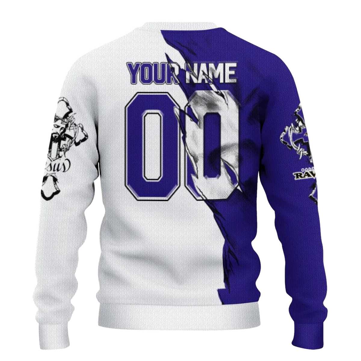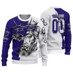 Elevate your streetwear game with our Personalized Baltimore Ravens Jesus Tears Purple White AOP Sweatshirt. Perfect for die-hard fans, this unique piece is designed for casual outings, lounging at home, or hitting the gym. Its all-over print adds a modern edge that showcases your style while keeping comfort at the forefront.