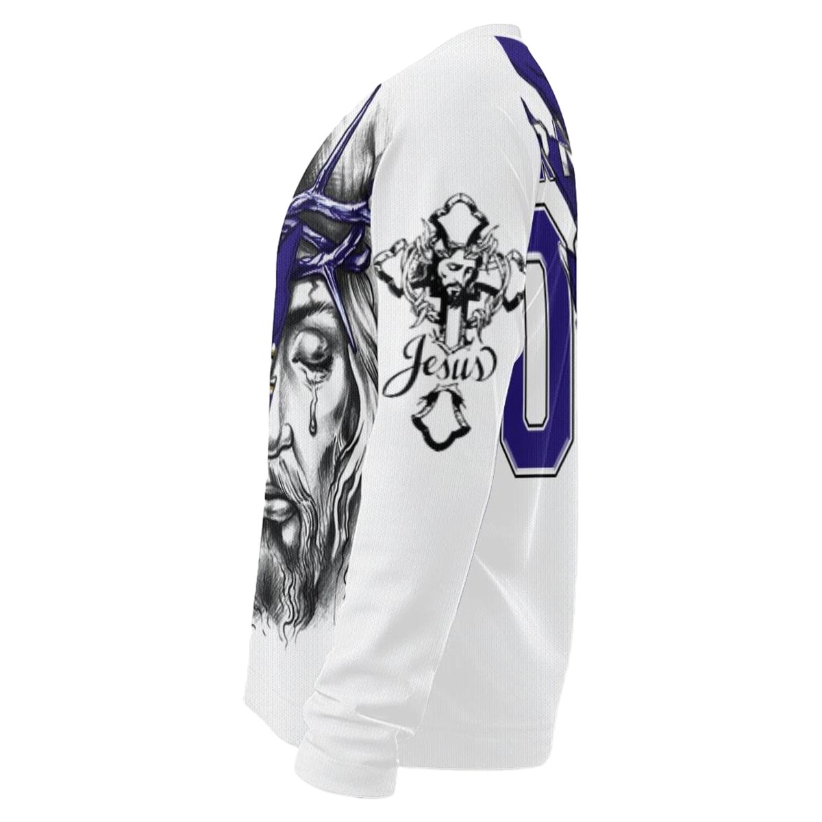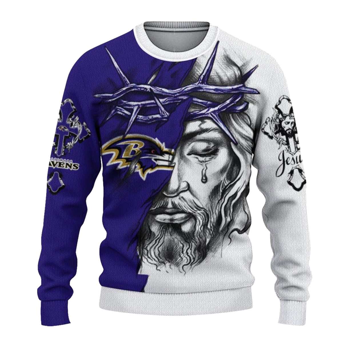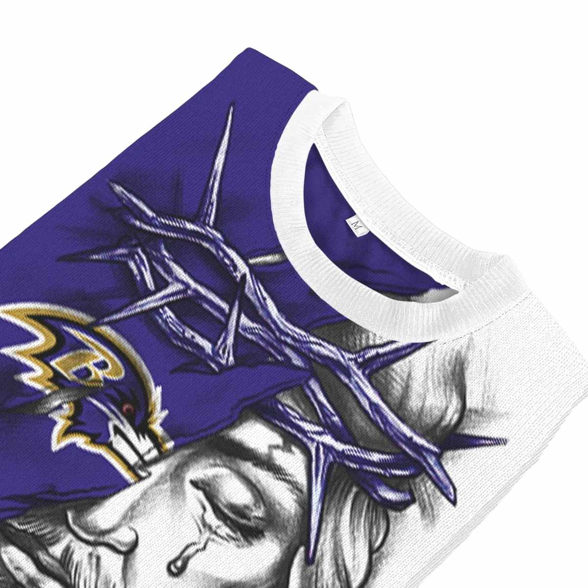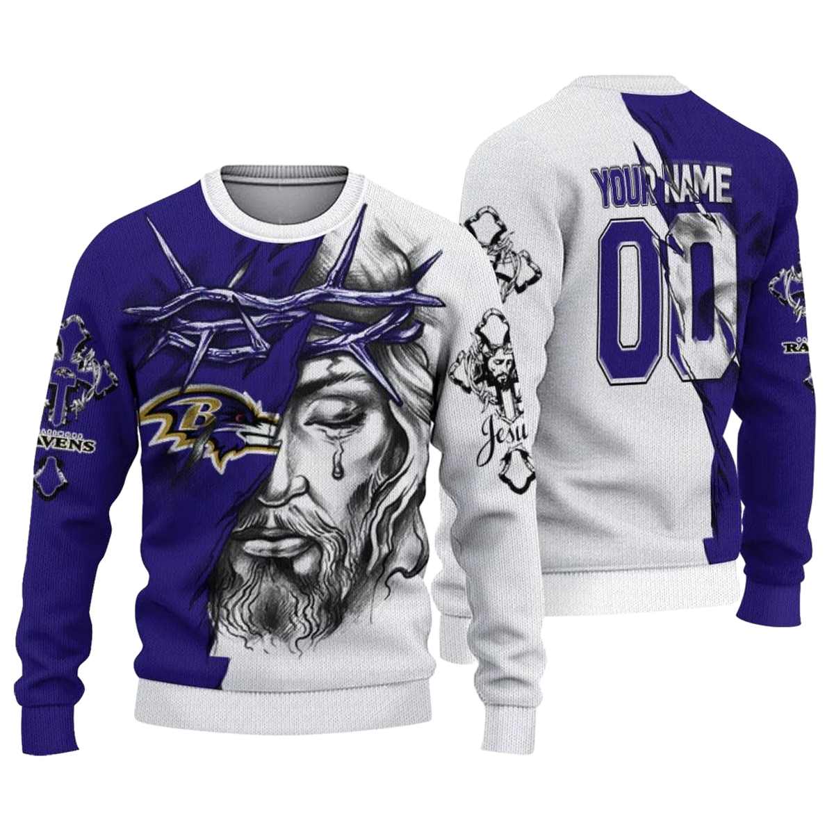 Personalized Baltimore Ravens Jesus Tears Purple White AOP Sweatshirt