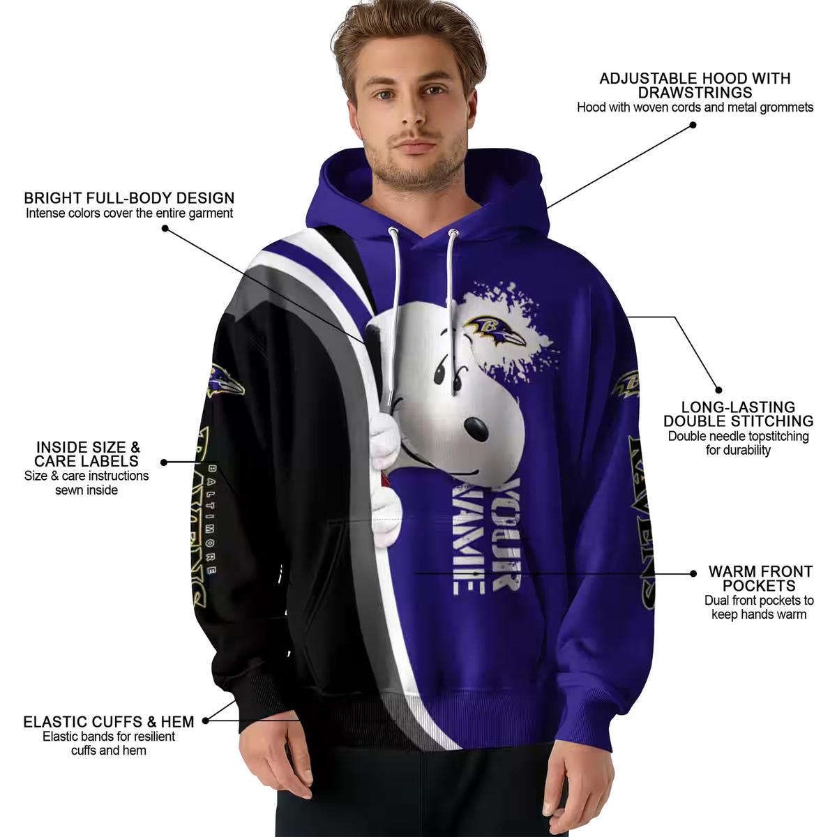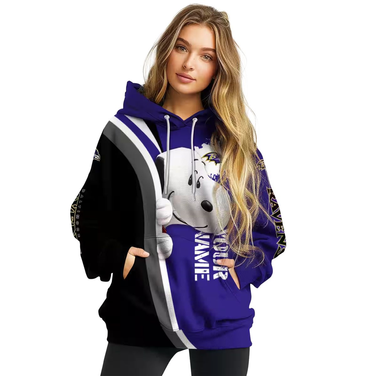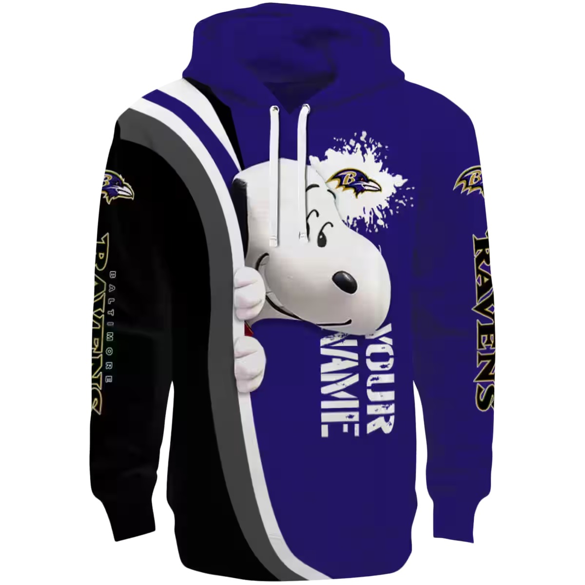 Personalized Baltimore Ravens Peeking Snoopy Purple Black AOP Hoodie