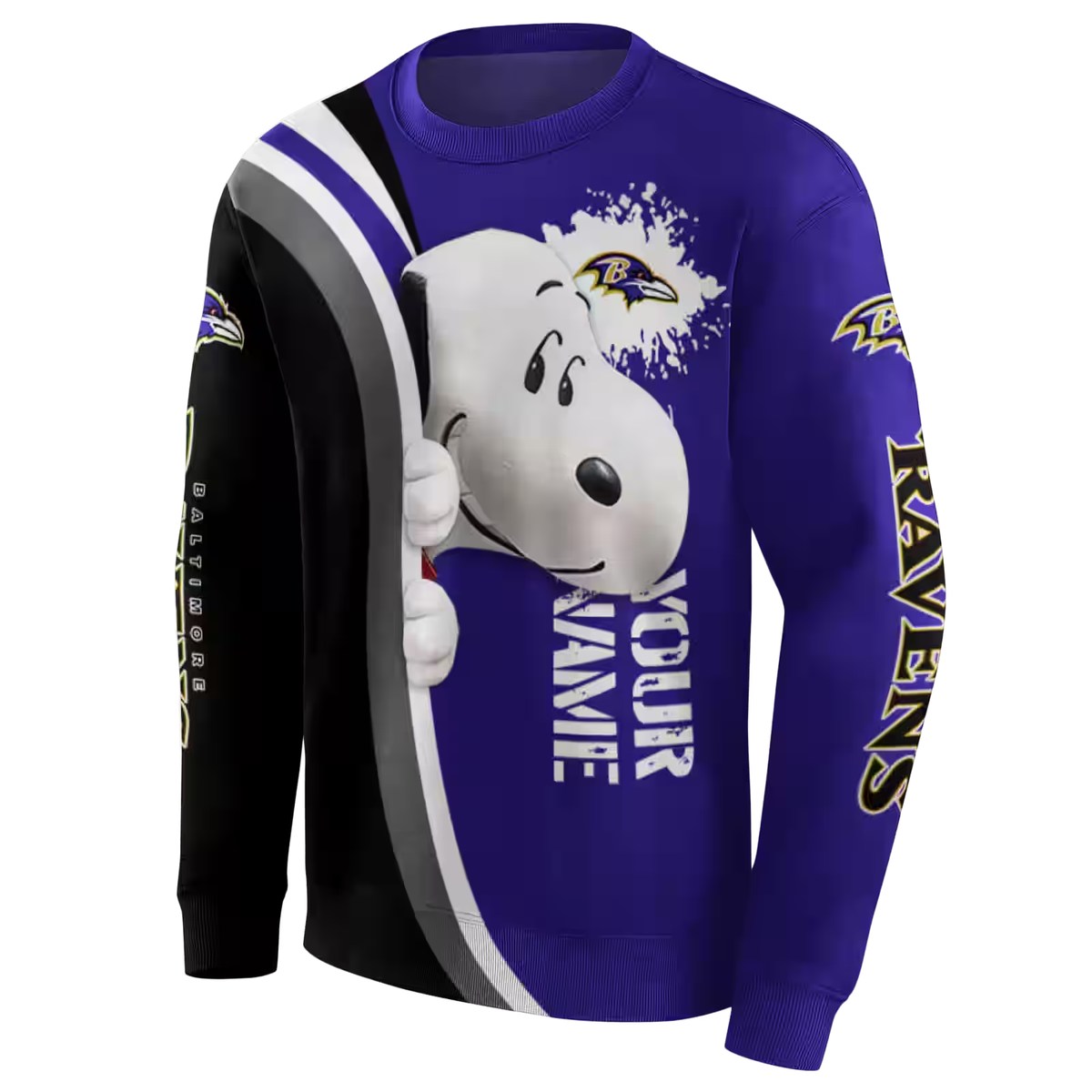 Personalized Baltimore Ravens Peeking Snoopy Purple Black AOP Sweatshirt