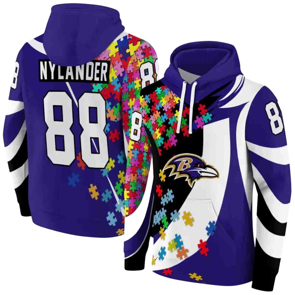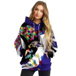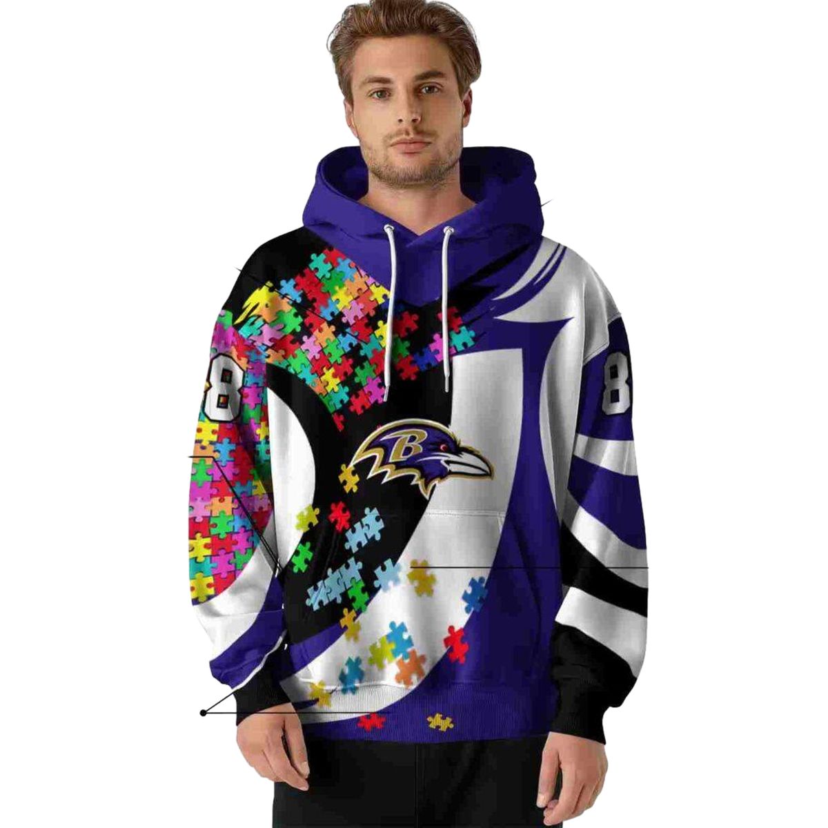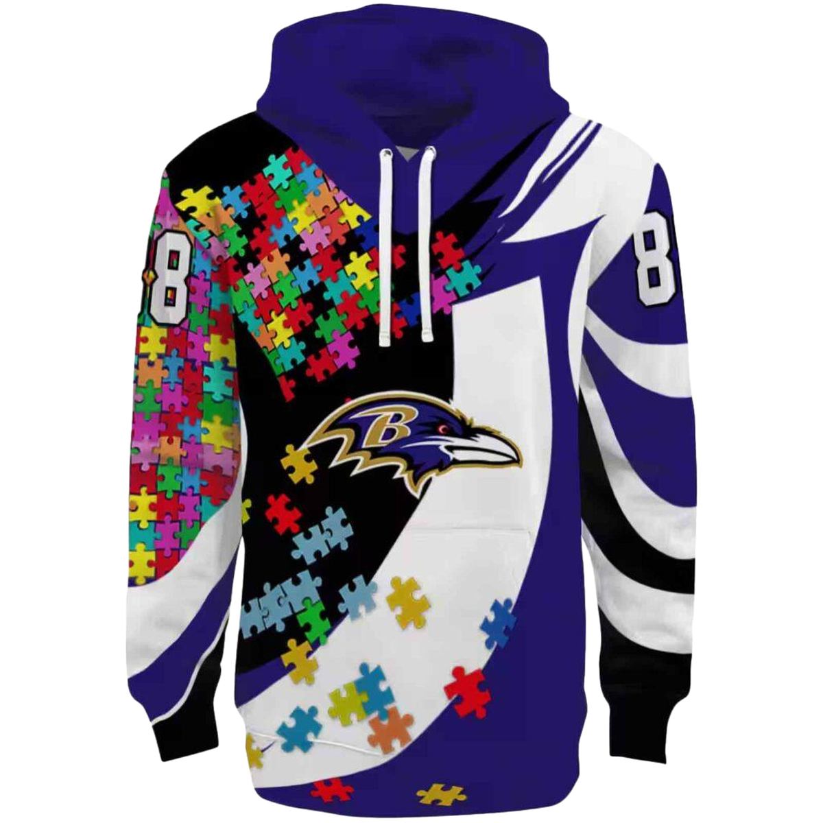 Show off your team spirit with our Personalized Baltimore Ravens Puzzle Pieces Purple All-Over Print Hoodie! Perfect for passionate fans and casual wearers alike, this hoodie is designed for those who love to stand out while staying cozy. Ideal for game days, outdoor activities, or just lounging around, its unique design brings a vibrant touch to your winter wardrobe.