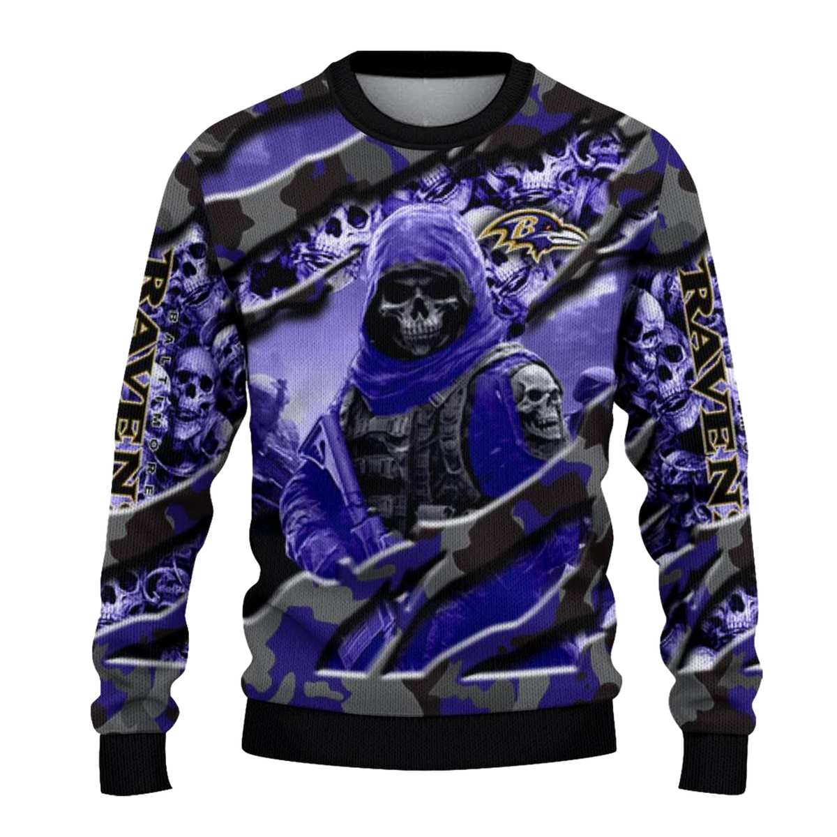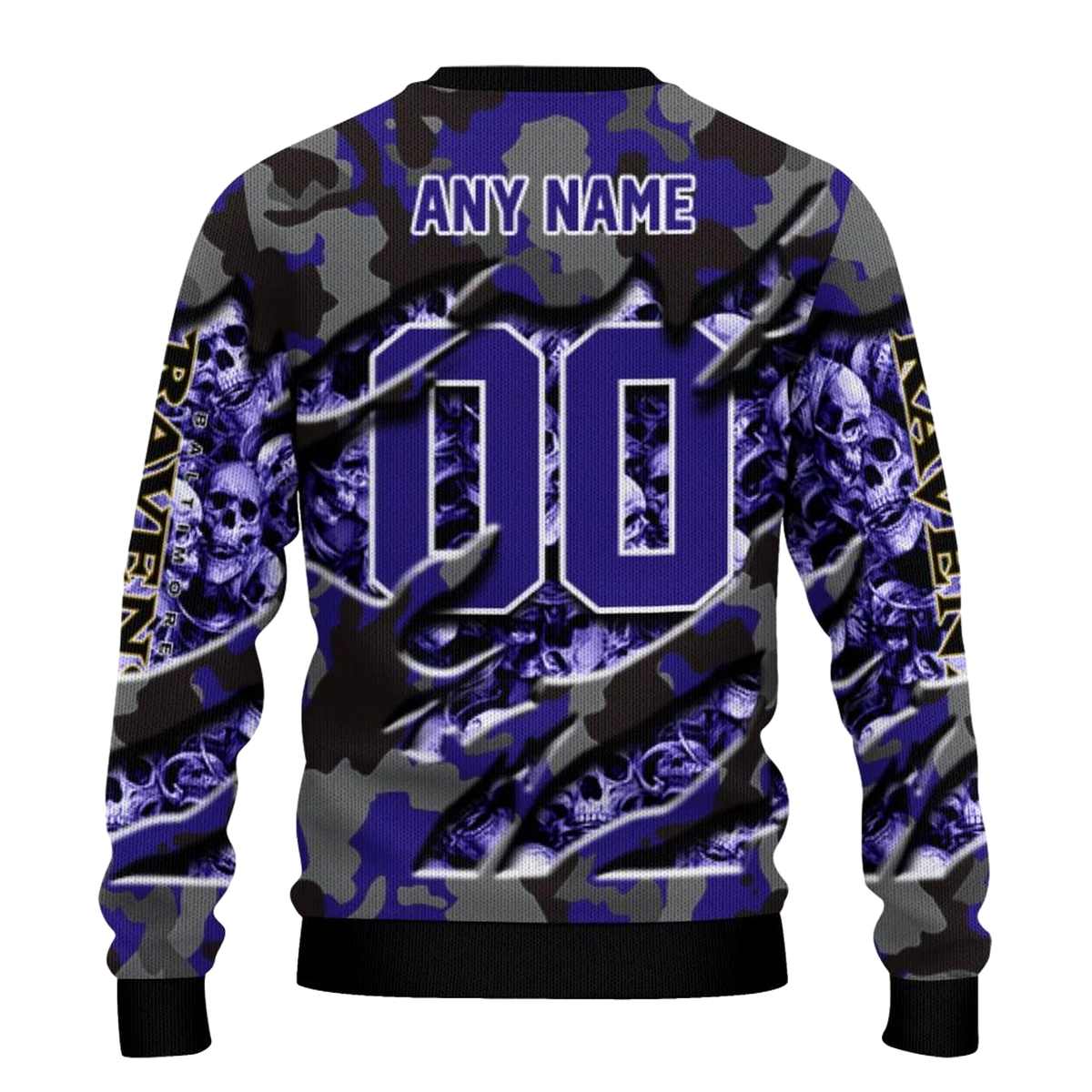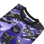 Embrace your team spirit with our Personalized Baltimore Ravens Skull Horde Purple AOP Sweatshirt, designed for the ultimate fan. This eye-catching sweatshirt is perfect for game days, casual outings, or just lounging at home. Its unique all-over print showcases your love for the Ravens while providing a modern twist to your streetwear wardrobe.