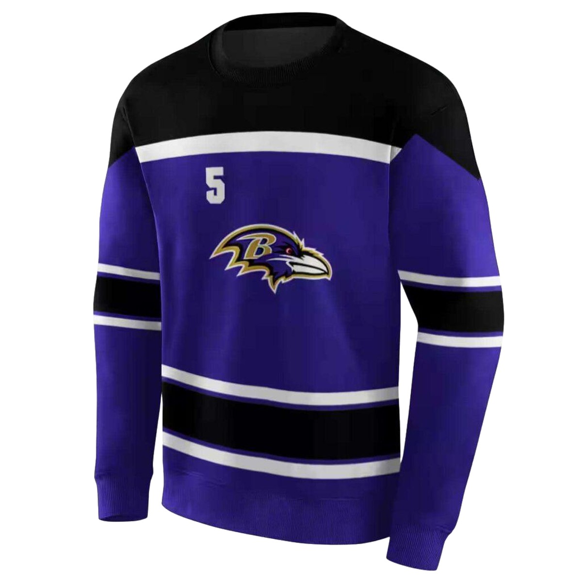 Elevate your streetwear game with our Personalized Baltimore Ravens Striped Pattern Purple AOP Sweatshirt. Perfect for die-hard fans and casual wearers alike, this unique sweatshirt effortlessly combines style and comfort. Whether you’re cheering from the stands, hitting the gym, or lounging at home, this piece is designed to keep you cozy and fashionable all season long.