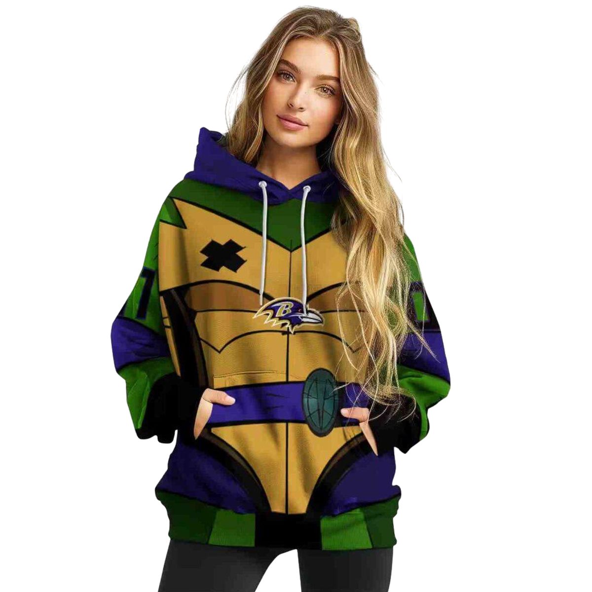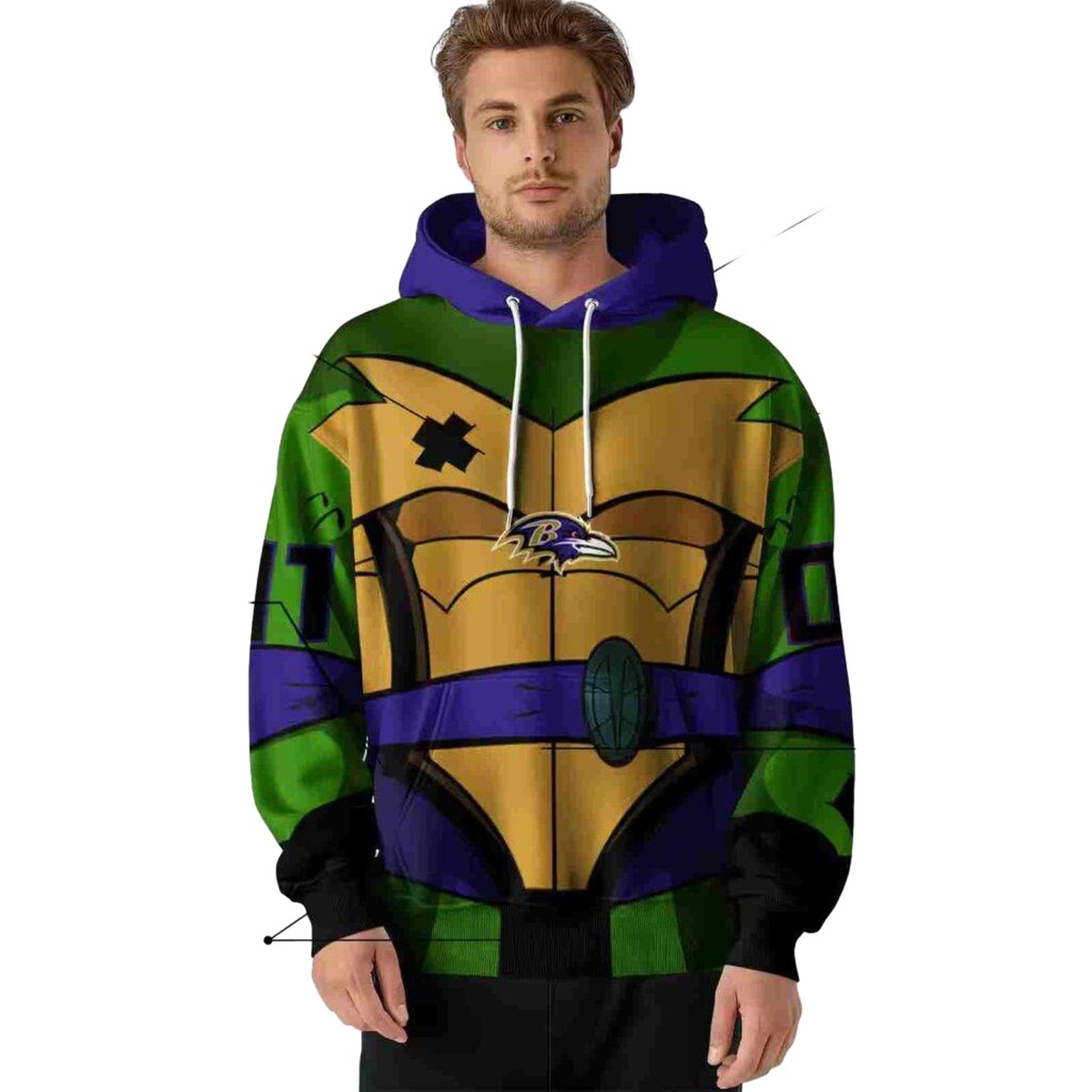 Introducing the Personalized Baltimore Ravens Superhero Armor Purple Green AOP Hoodie, a must-have for dedicated fans and superhero enthusiasts alike. This vibrant all-over print hoodie is perfect for game days, casual outings, or cozying up at home. With its unique design, it effortlessly combines style and comfort, making it an ideal choice for both men and women who want to showcase their team spirit with a flair.