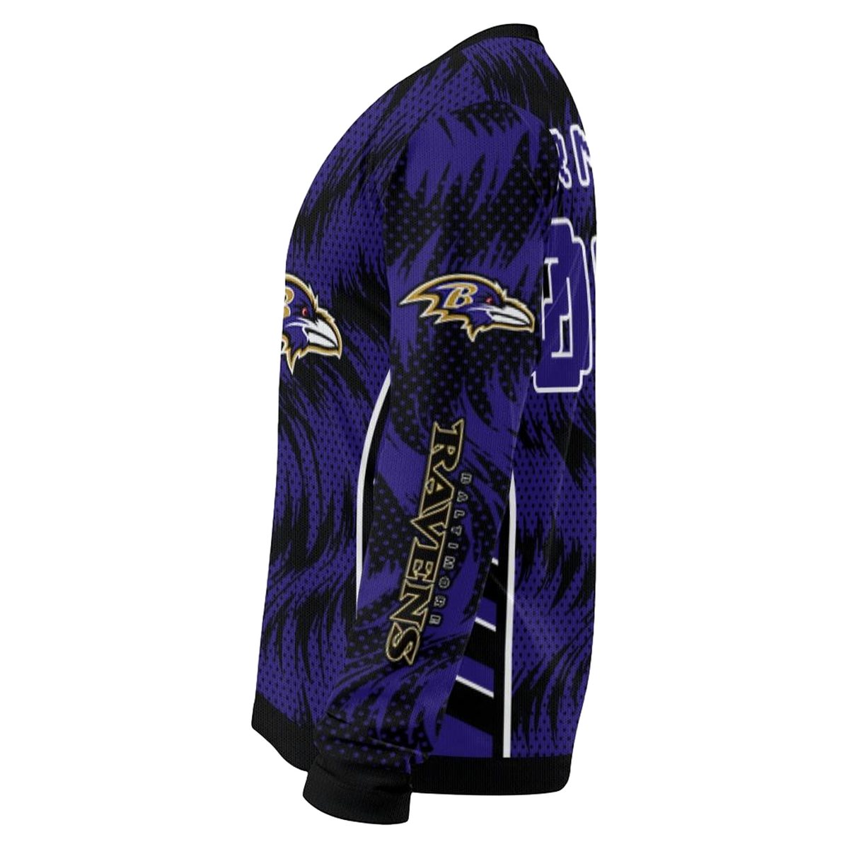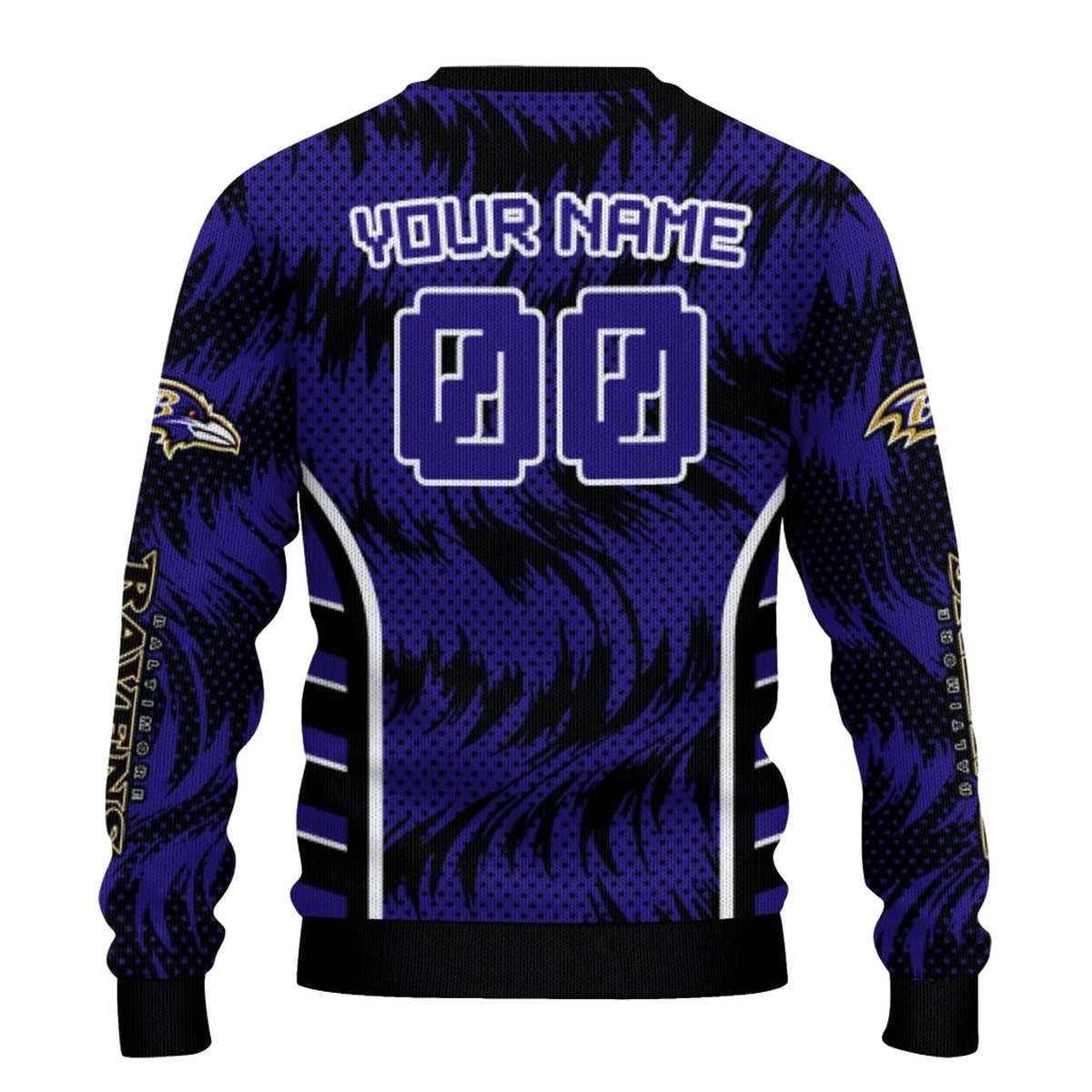 Unleash your team spirit with our Personalized Baltimore Ravens Swirl Flow Purple AOP Sweatshirt, designed for dedicated fans who want to showcase their love for the Ravens in style. Perfect for casual outings, game days, or cozy nights in, this sweatshirt combines a vibrant all-over print with a relaxed fit that suits anyone looking to make a bold statement.