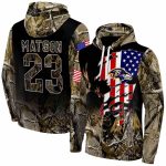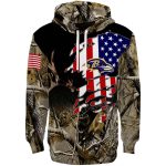Show your team spirit and love for the outdoors with our Personalized Baltimore Ravens US Flag Tree Camo AOP Hoodie. Perfect for both passionate fans and nature enthusiasts, this hoodie is designed for casual outings, tailgating, or simply lounging at home. Its unique all-over print combines the iconic Baltimore Ravens theme with a striking tree camo, making it a standout piece in any wardrobe.
