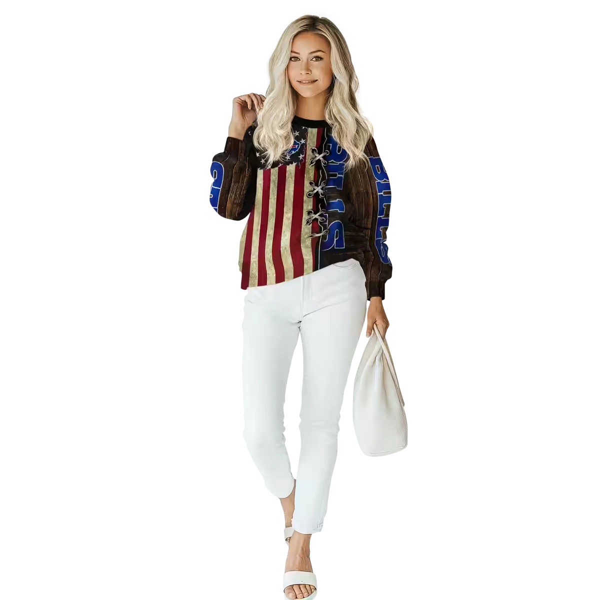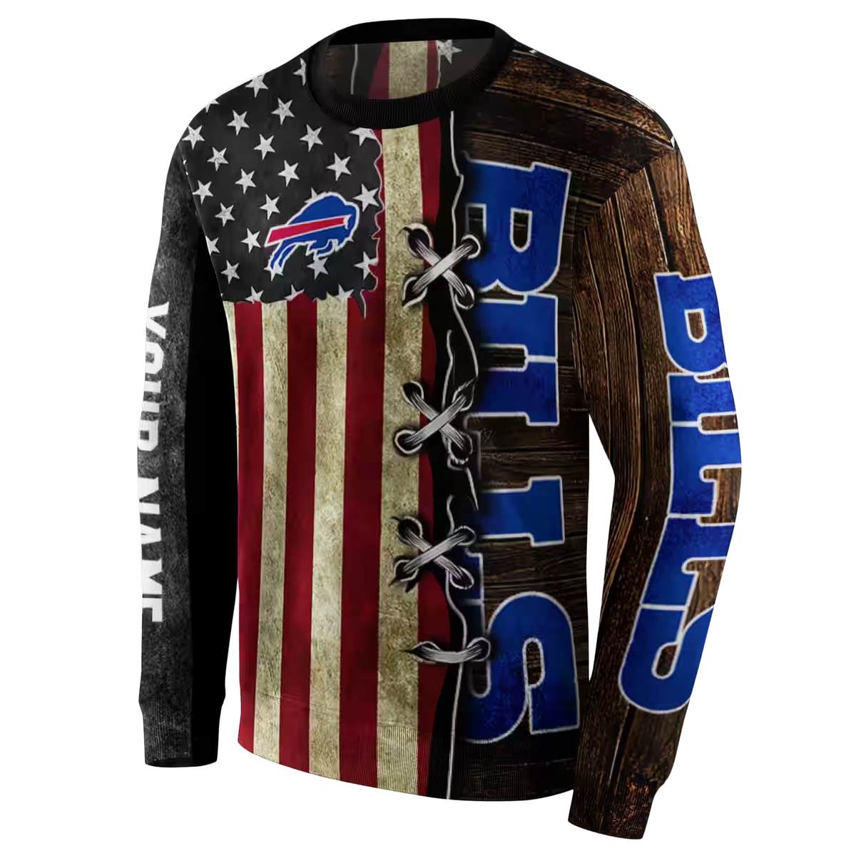 Show off your team spirit with our Personalized Buffalo Bills American Pride AOP Sweatshirt, designed for true fans who want to celebrate their love for the game. This stylish and cozy sweatshirt is perfect for casual outings, game days, or simply lounging at home. Its unique all-over print and relaxed fit make it a standout piece in any streetwear collection.
