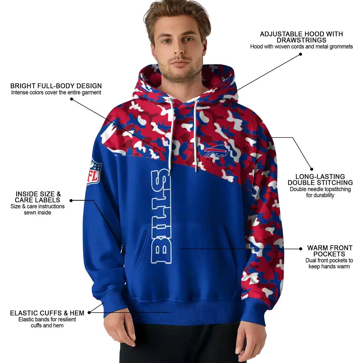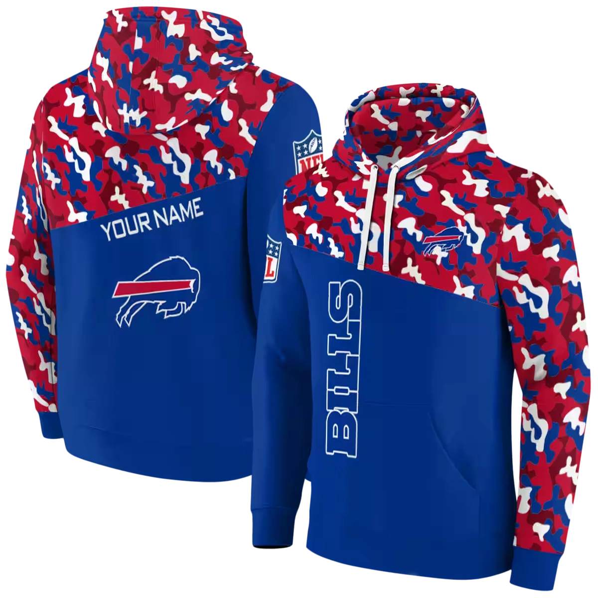 Embrace your team spirit with our Personalized Buffalo Bills Camo Pattern Blue AOP Hoodie, designed for fans who want to showcase their loyalty in style. Perfect for game days, casual outings, or simply lounging at home, this hoodie blends comfort with a bold graphic print, making it a standout piece for both men and women.