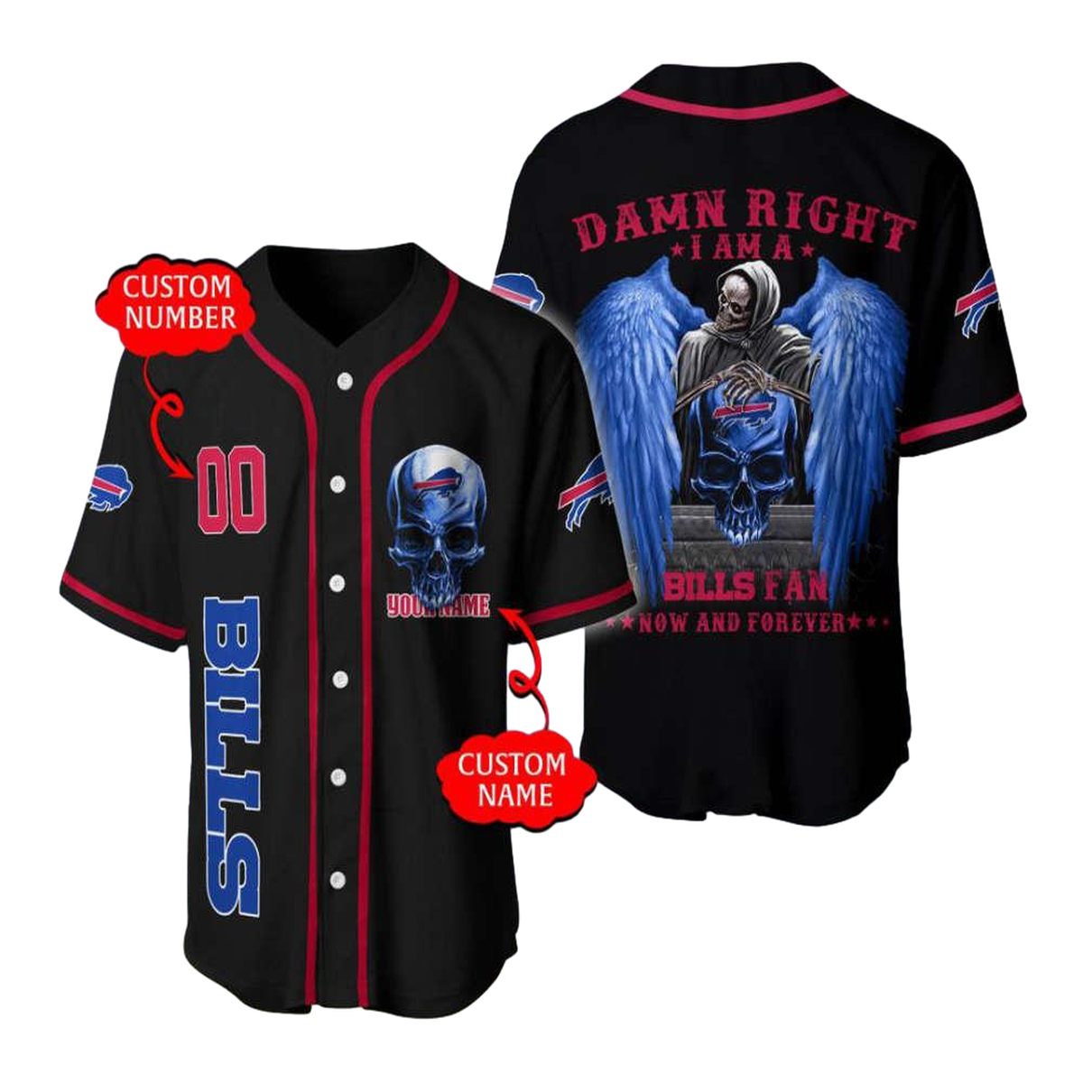 Show your team spirit and make a bold statement with our Personalized Buffalo Bills Damn Right Skull Angel Baseball Jersey. Whether you’re cheering from the stands or hanging out with friends, this jersey is designed to elevate your sporty style while keeping you comfortable and looking great.