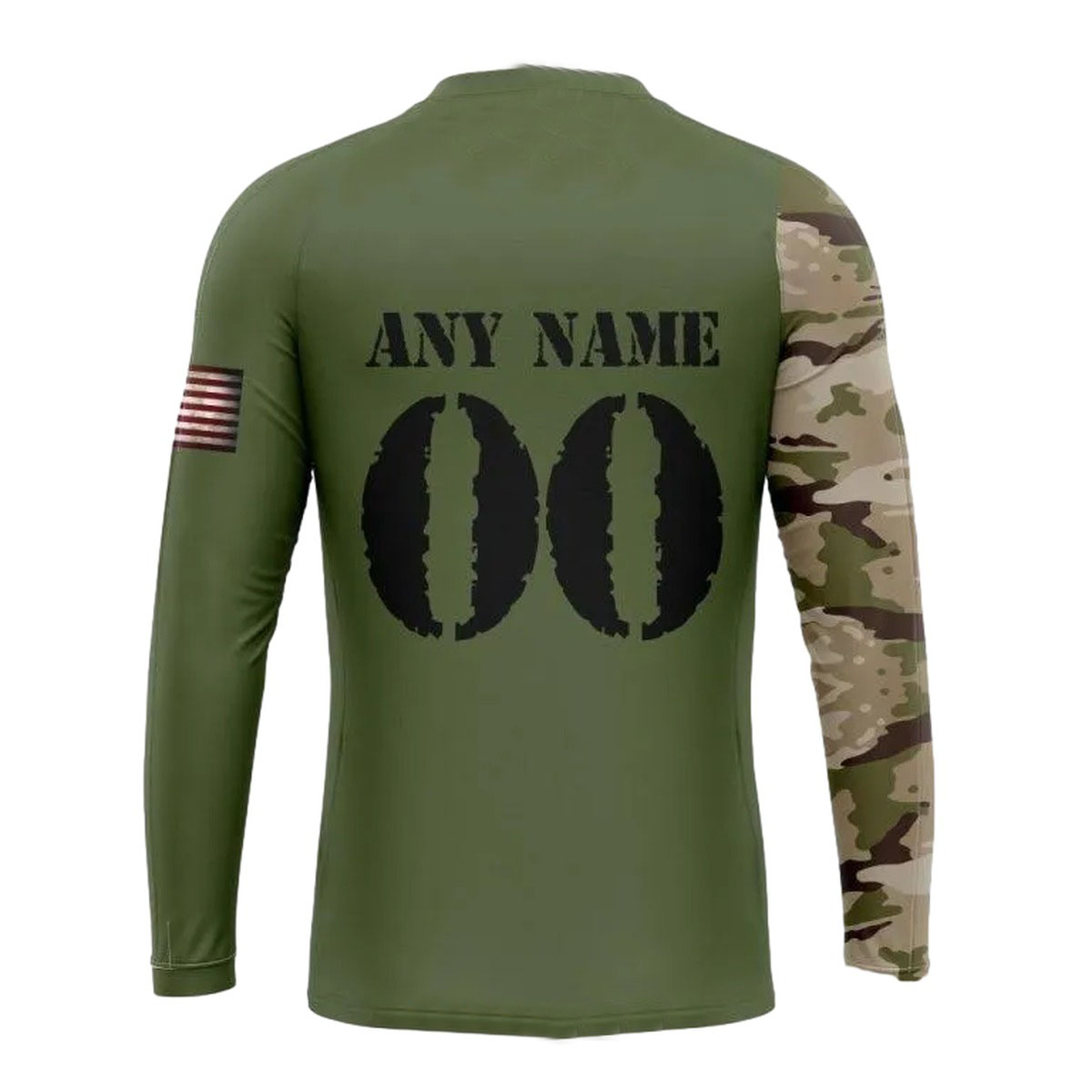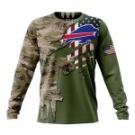 Elevate your streetwear game with our Personalized Buffalo Bills Green Camo US Military AOP Sweatshirt. Perfect for fans and adventurers alike, this sweatshirt seamlessly combines style and comfort, making it an ideal choice for casual outings, workouts, or lounging at home. Its unique all-over camouflage print ensures you stand out while embracing the spirit of the Buffalo Bills.