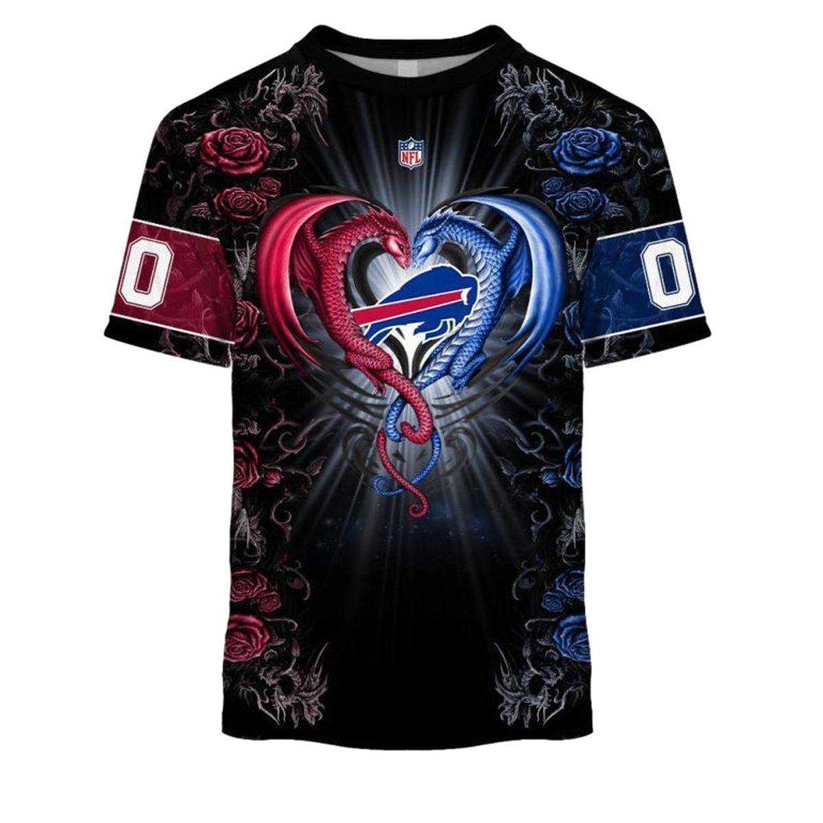 Show your team spirit and unique style with our Personalized Buffalo Bills Rose Dragon AOP T-Shirt! Perfect for fans who want to stand out, this shirt blends casual comfort with a bold graphic design that’s sure to turn heads at game day parties, casual outings, or any occasion where you want to express your love for the Buffalo Bills in a creative way.