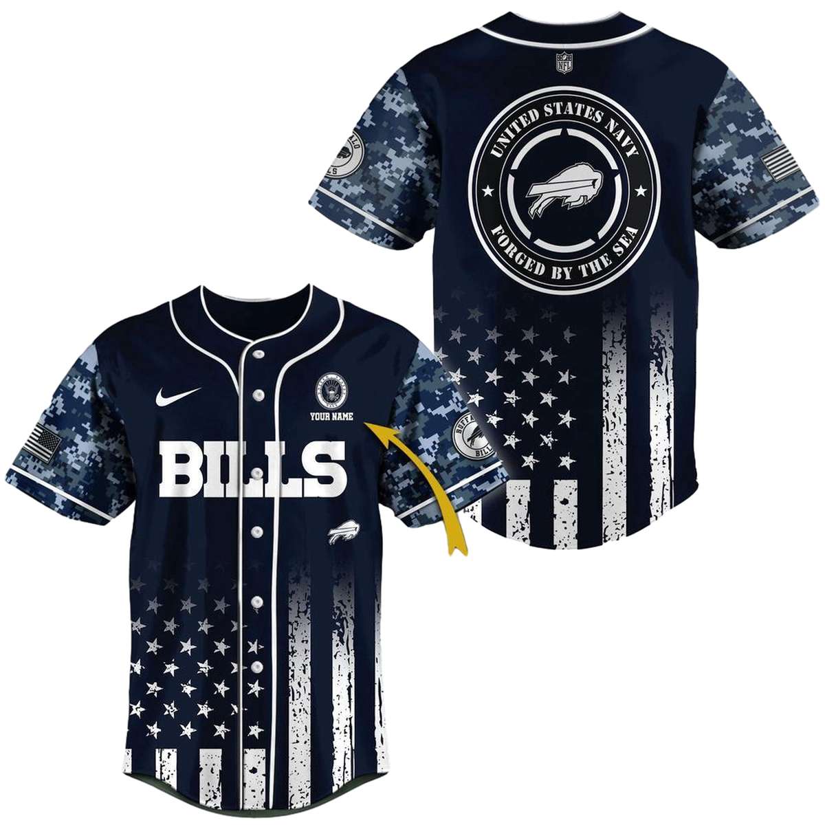 Personalized Buffalo Bills Veteran Us Navy Baseball Jersey