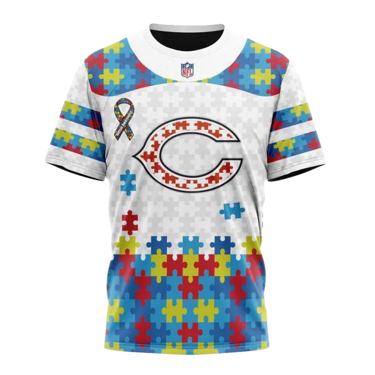 Show your support for autism awareness with our Personalized Chicago Bears Autism Awareness AOP T-shirt, designed for fans and advocates alike. This unique graphic tee is perfect for casual outings, game days, or simply making a statement in your everyday wardrobe. Stand out with a shirt that combines team spirit with a meaningful cause!
