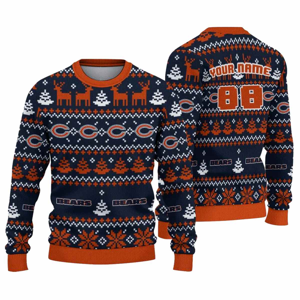 Show off your love for the Chicago Bears this holiday season with our Personalized Chicago Bears Big Logo and Christmas Designs All-Over Printed Sweatshirt. Perfect for die-hard fans and casual wearers alike, this cozy sweatshirt is ideal for holiday gatherings, game days, or simply lounging around. With its unique all-over print, it combines team spirit with festive cheer, making it a standout piece in any streetwear collection.