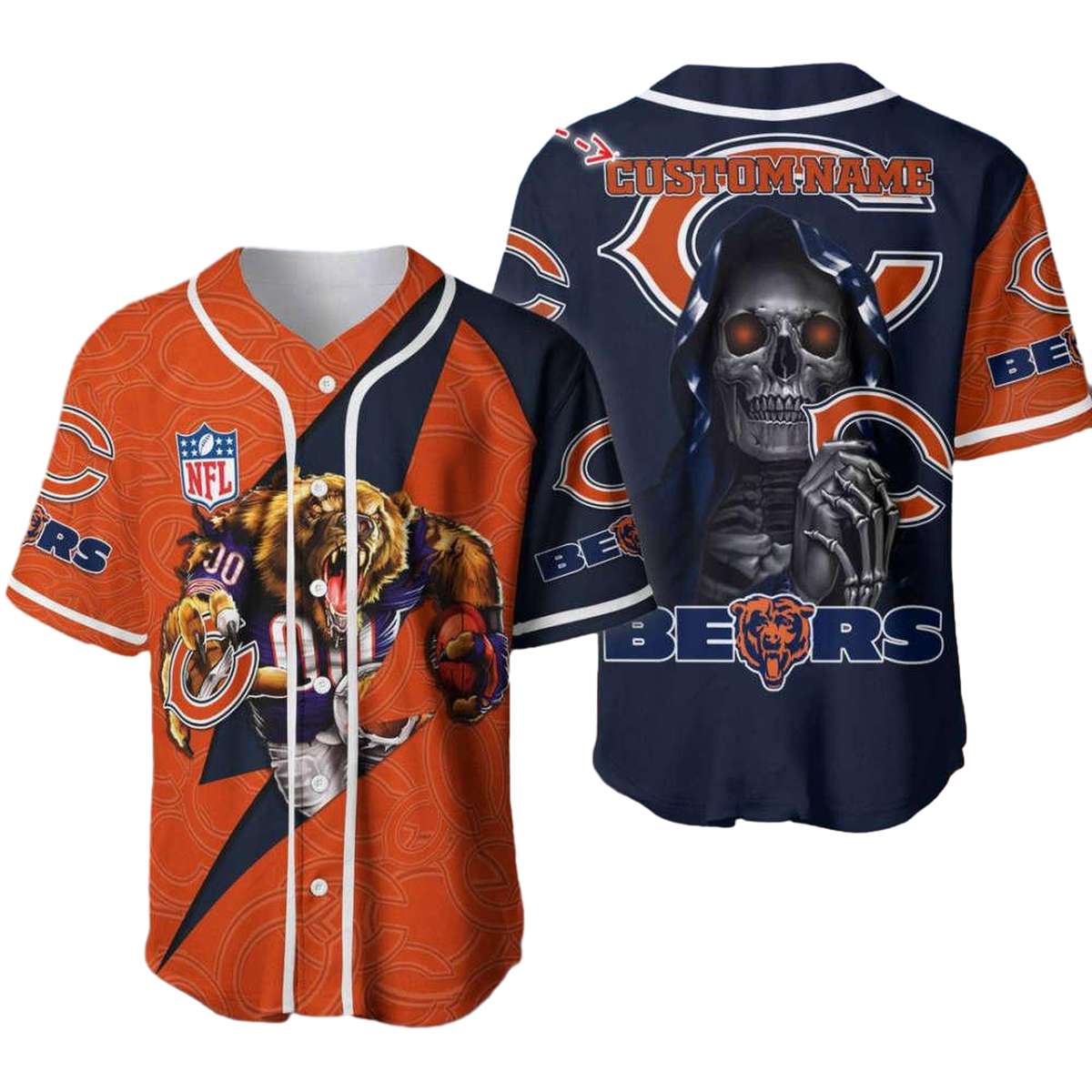 Personalized Chicago Bears Mascot And Death Blue Orange Baseball Jersey