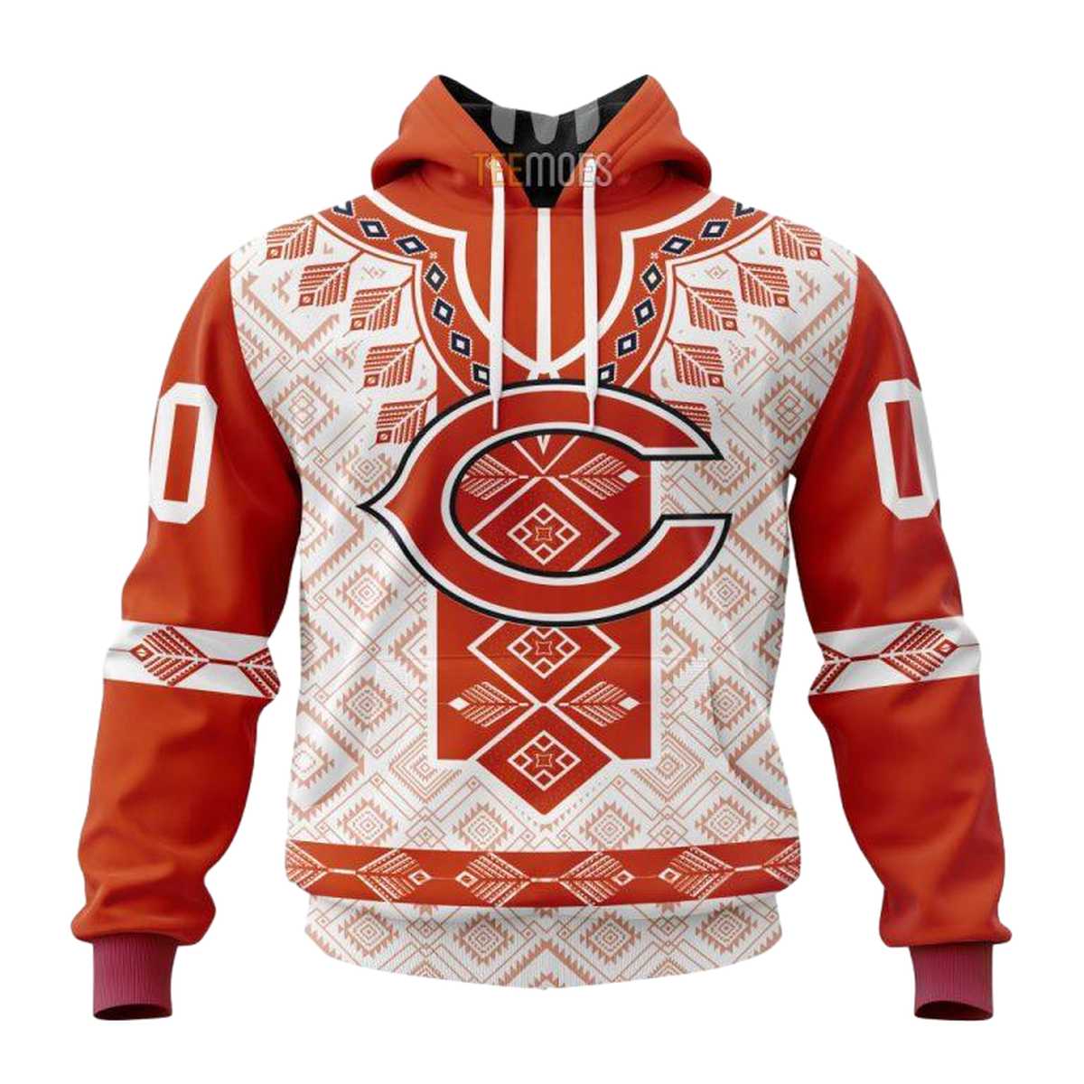Show off your team spirit in style with our Personalized Chicago Bears Native Pattern All-Over Hoodie. This unique piece is perfect for both die-hard fans and casual wearers alike, making it an ideal choice for game days, weekend hangouts, or outdoor activities during the cooler months. With its eye-catching design and comfortable fit, this hoodie stands out as a must-have for anyone looking to blend comfort with team pride.