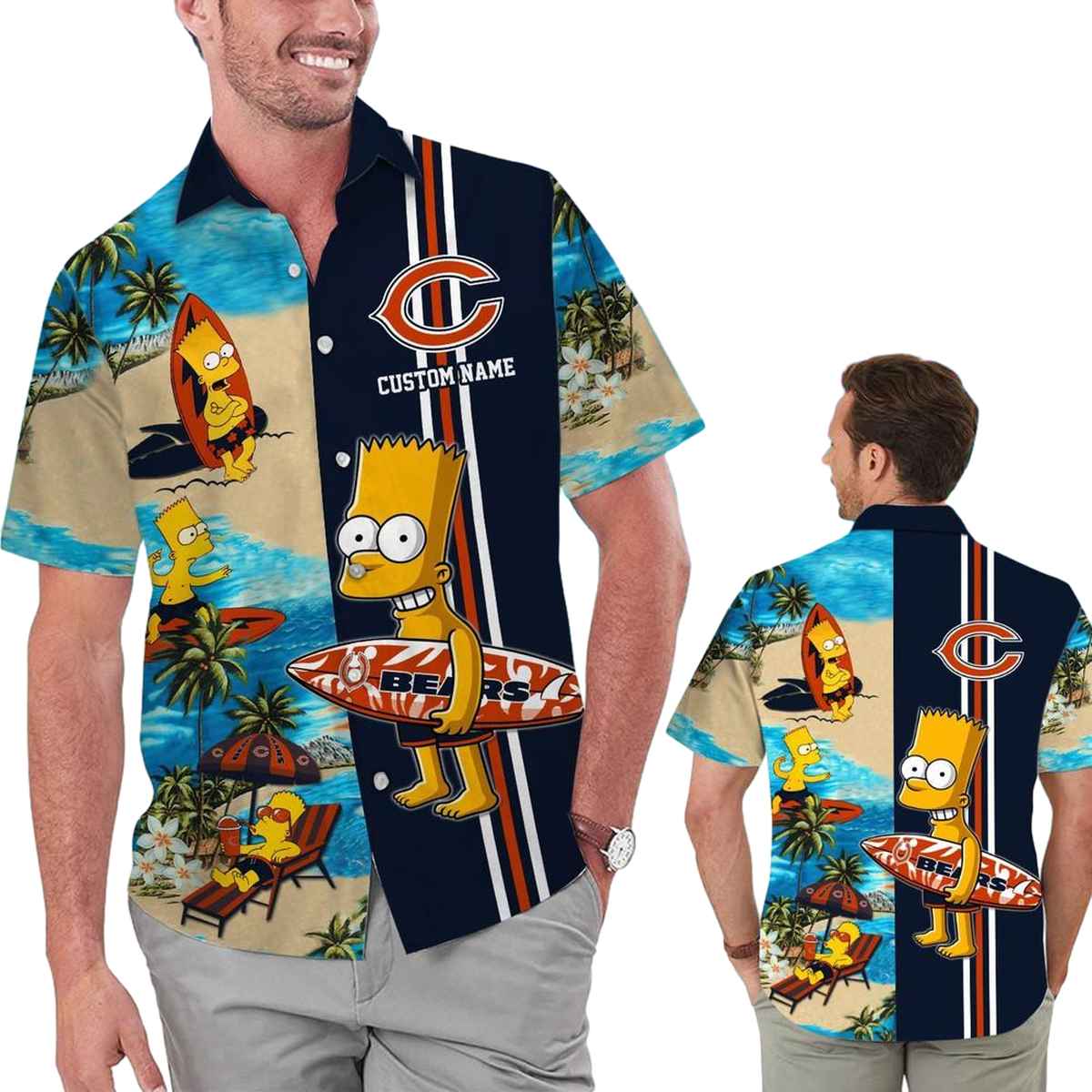 Personalized Chicago Bears Simpsons Surfing Funny Hawaiian Shirt