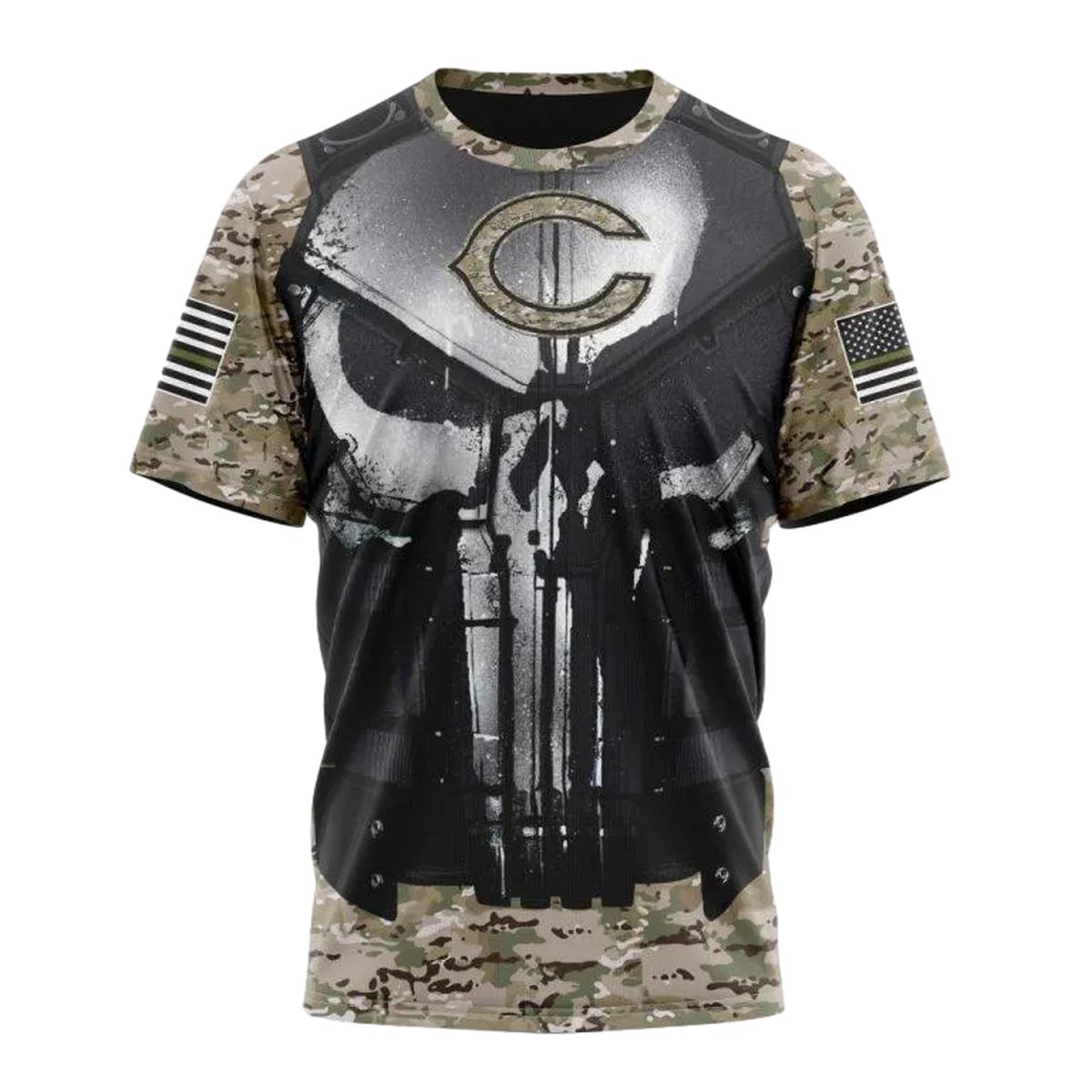 Show your team spirit with the Personalized Chicago Bears Skull Camo Veteran AOP T-Shirt! Perfect for die-hard fans and those who appreciate a unique twist on classic sportswear, this shirt is ideal for game days, casual outings, or just hanging out with friends. Its eye-catching all-over print combines bold graphics with a stylish camo design, making it a standout addition to any wardrobe.