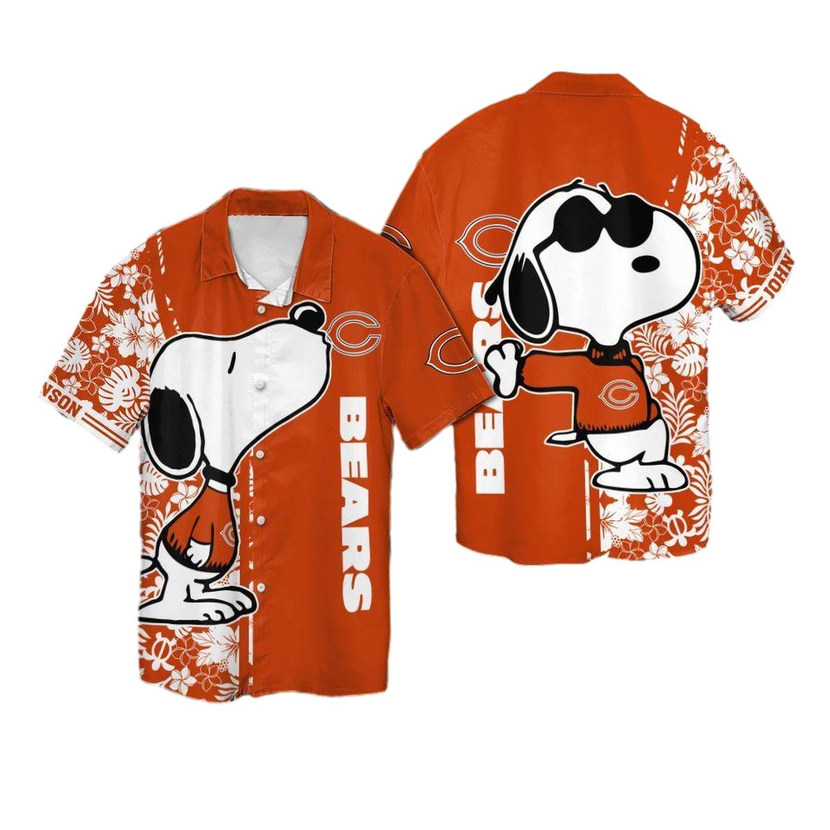 Personalized Chicago Bears Snoopy Floral Orange Pattern Hawaiian Shirt