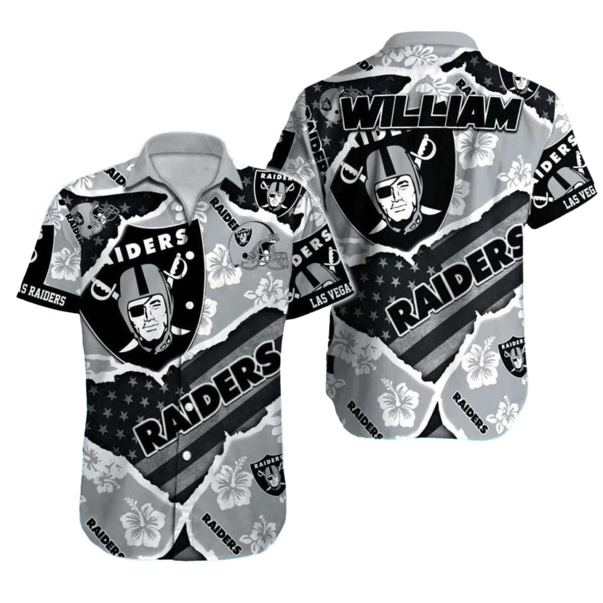 Step into summer with our Personalized Las Vegas Raiders American Flag Floral Style Hawaiian Shirt, designed for the ultimate fan who loves to showcase their team spirit in style! Perfect for beach days, backyard barbecues, or game day gatherings, this unique shirt blends vibrant floral patterns with a bold American flag theme, making it a standout piece for any casual occasion.