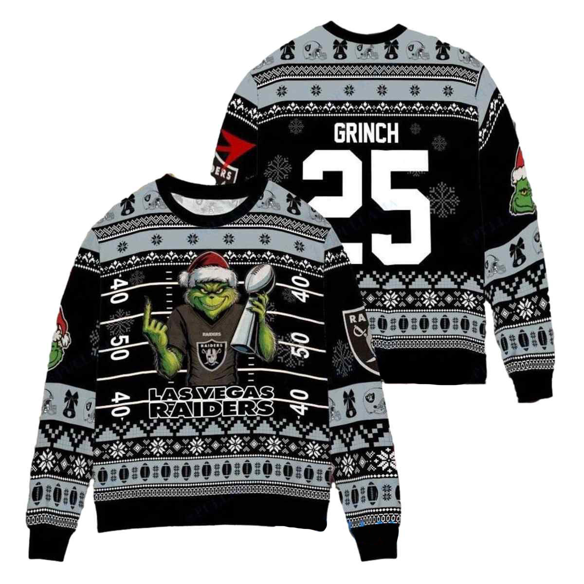 Get ready to spread some holiday cheer with our Personalized Las Vegas Raiders Grinch Super Bowl Trophy Ugly Sweater! Perfect for die-hard fans and holiday lovers alike, this festive piece is designed to bring laughter and warmth to any gathering, whether you’re at a holiday party or cozying up at home. Stand out from the crowd and show off your team spirit in a fun, unique way that only an Ugly Sweater can deliver!