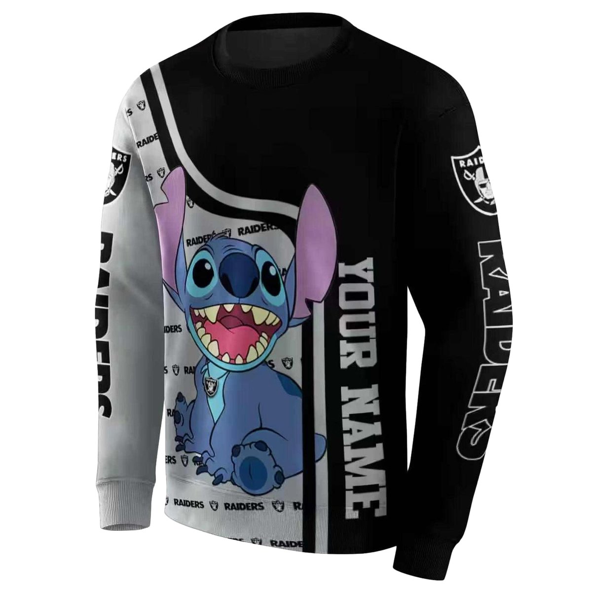 Get ready to show off your team spirit in style with our Personalized Las Vegas Raiders Logo And Stitch Black AOP Sweatshirt. Perfect for die-hard fans, this sweatshirt is designed for casual outings, cozy nights in, or a spirited day at the game. Its unique all-over print captures the essence of the Raiders, making it a standout piece in any streetwear collection.