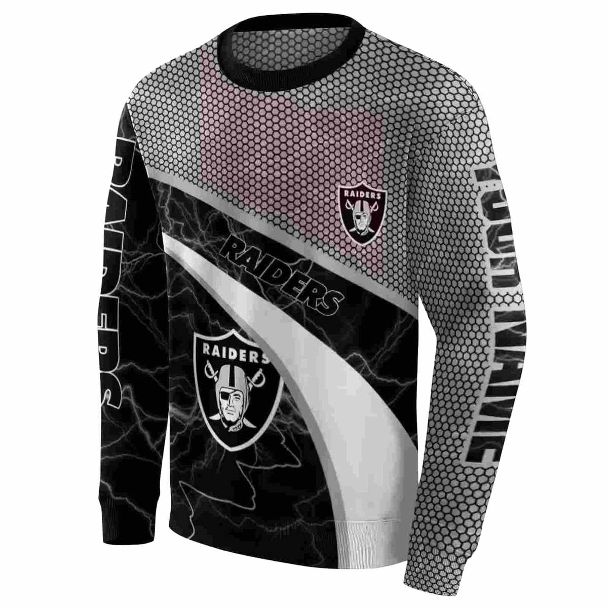 Elevate your streetwear game with our Personalized Las Vegas Raiders Logo Hexagonal Mesh Black Gray AOP Sweatshirt. Designed for fans who want to showcase their team spirit, this sweatshirt is perfect for casual outings, game days, or simply lounging at home. With its unique graphic and modern style, it’s a standout piece that combines comfort with a touch of edgy flair.