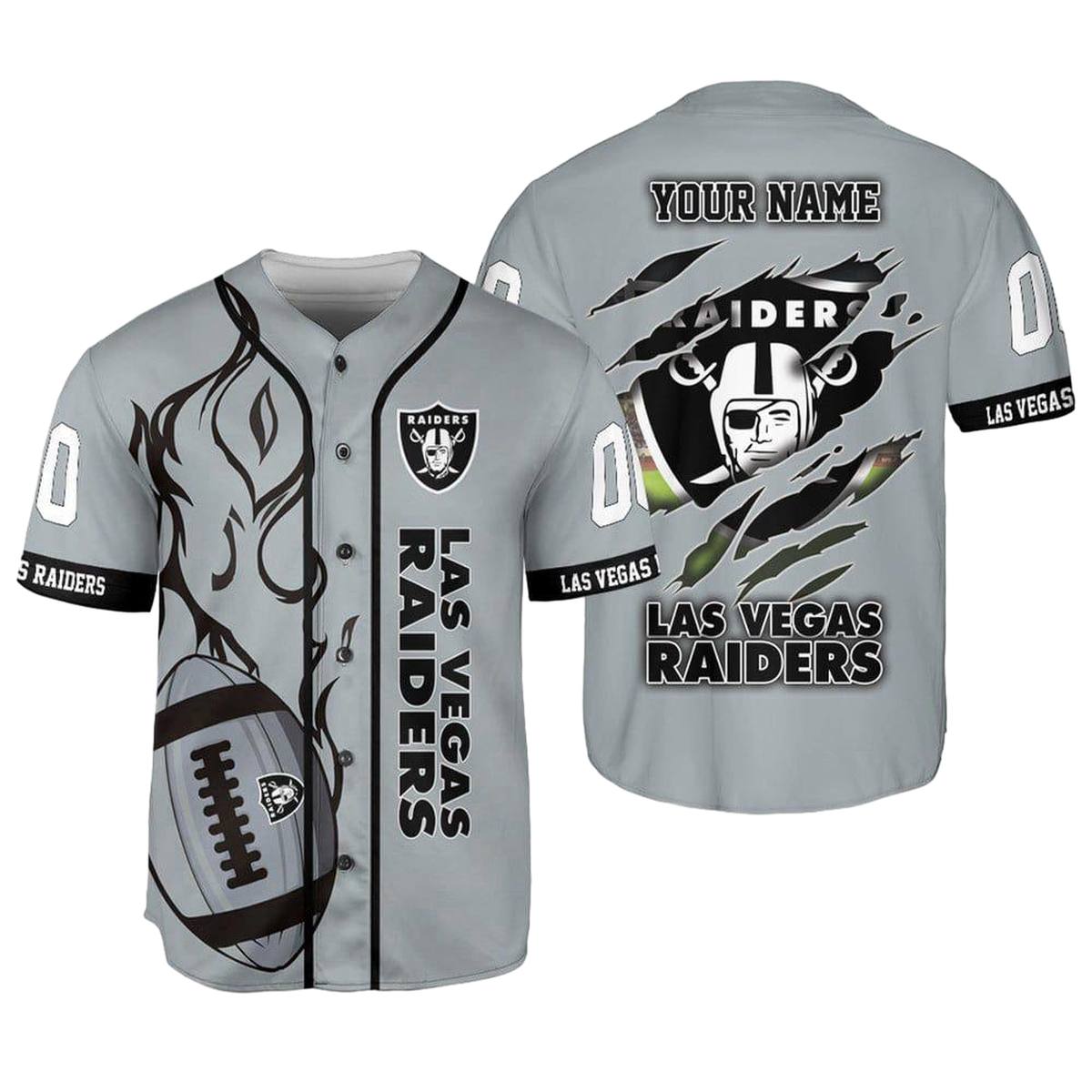 Elevate your game day look with our Personalized Las Vegas Raiders Logo Silver Pattern Baseball Jersey. This stylish jersey is perfect for fans and athletes alike, making it a great choice for sporting events, casual hangouts, or as part of your team’s uniform. Show off your team spirit with a unique design that stands out on and off the field.