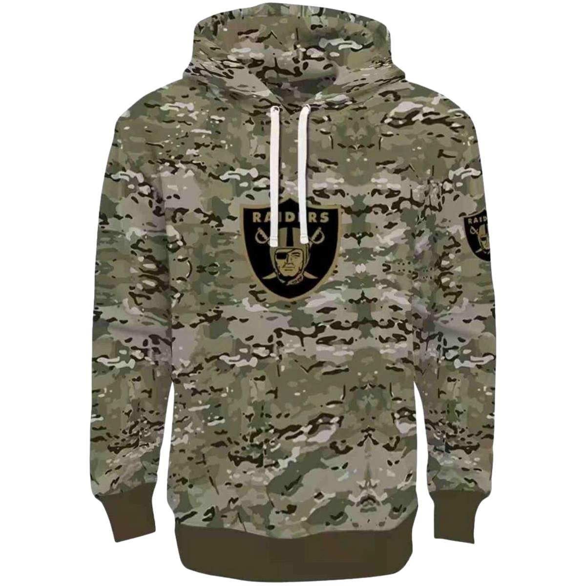 Embrace your team spirit with our Personalized Las Vegas Raiders Military Style AOP Hoodie, designed for fans who want to showcase their loyalty in style. Perfect for casual outings, tailgating, or simply lounging around, this hoodie combines comfort with a bold, eye-catching design that stands out in any crowd.