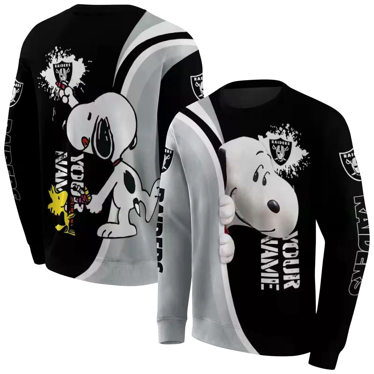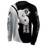 Elevate your streetwear game with the Personalized Las Vegas Raiders Peeking Snoopy Black AOP Sweatshirt. This stylish piece is perfect for fans of the Raiders and lovers of playful graphics, making it an ideal choice for casual outings, game days, or lounging at home. Its unique design adds a modern twist to your wardrobe, ensuring you stand out wherever you go.