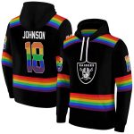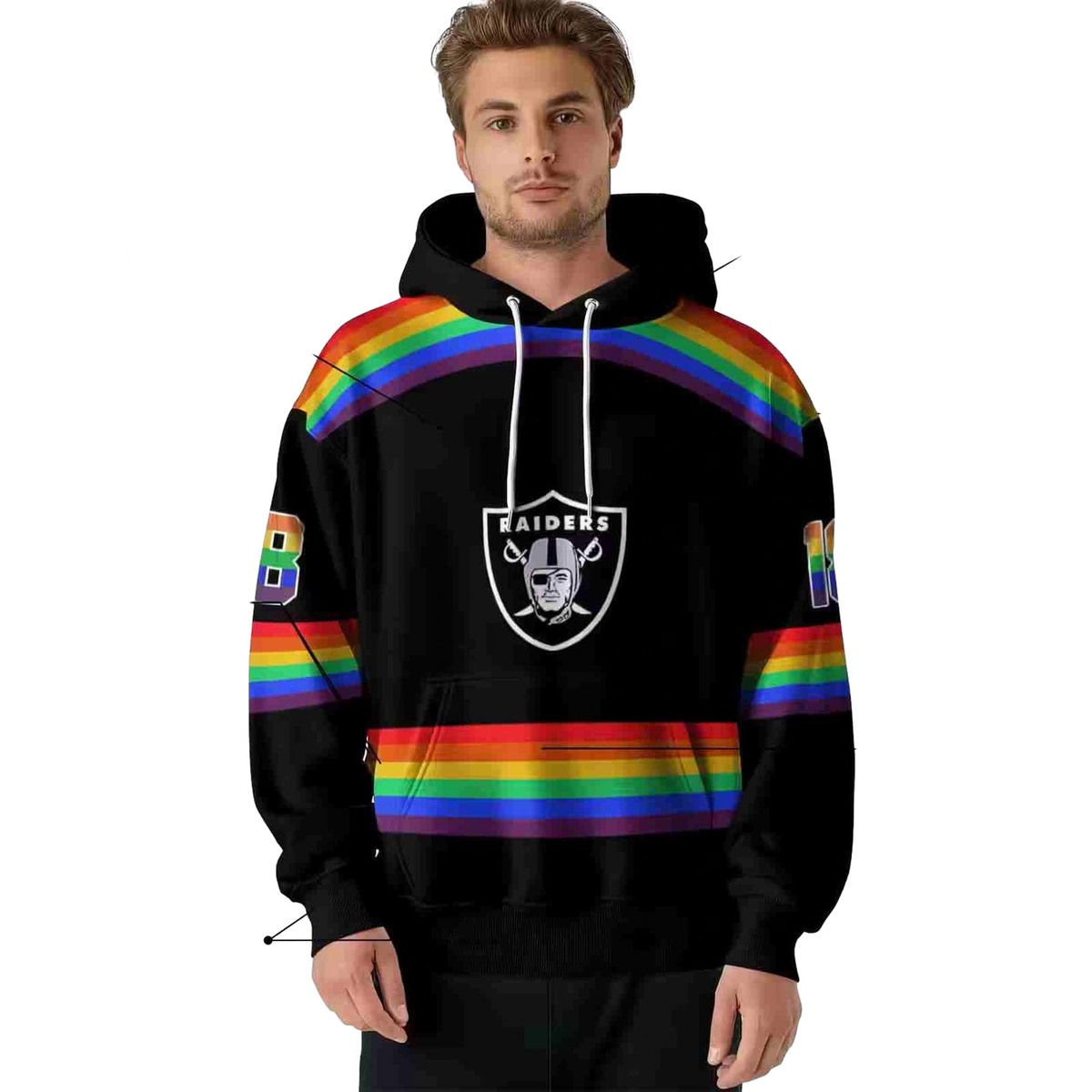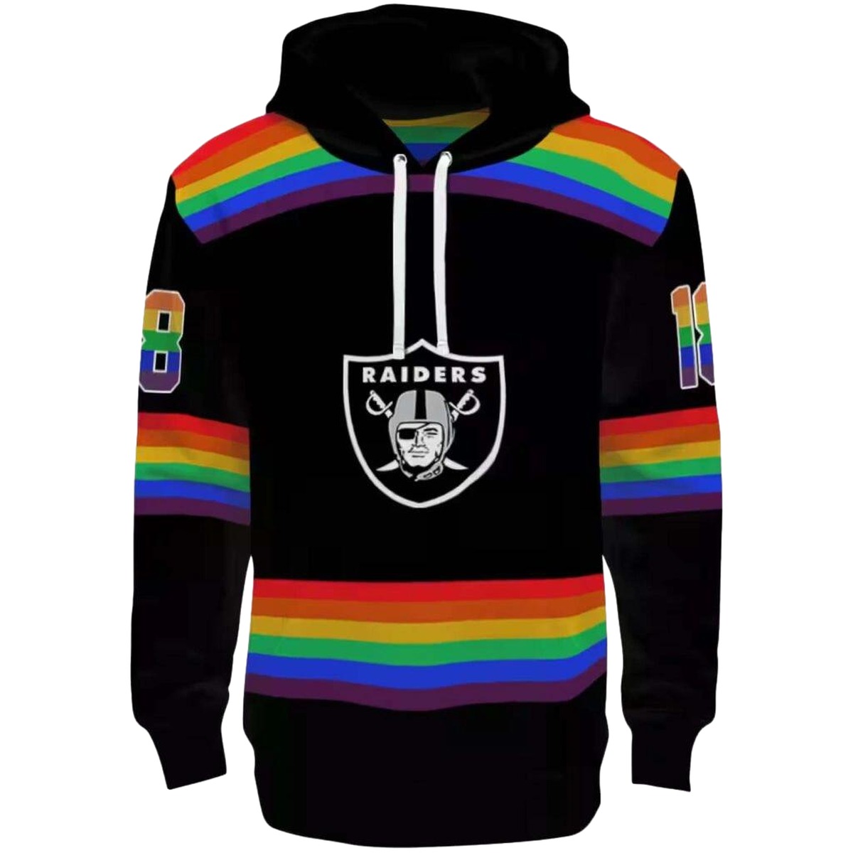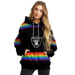Step into the vibrant world of fan fashion with our Personalized Las Vegas Raiders Rainbow Stripes Black All-Over Print Hoodie. Perfect for die-hard Raiders supporters, this hoodie is your go-to choice for game days, casual outings, or cozy evenings at home. Its unique rainbow stripe design sets it apart, allowing you to showcase your team pride in a stylish and eye-catching way.