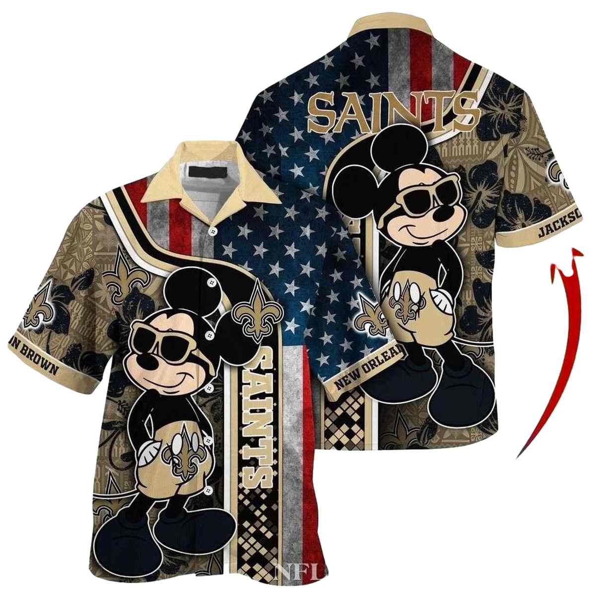 Personalized Mickey Mouse American Flag New Orleans Saints Hawaiian Shirt