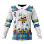 Show your support for a powerful cause with our Personalized Minnesota Vikings Autism Awareness All-Over Printed Sweatshirt. Designed for fans and allies alike, this cozy piece is perfect for casual outings, game days, or simply lounging at home. With its vibrant graphic and unique all-over print, it adds a modern edge to your streetwear wardrobe while promoting awareness and inclusion.