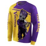 Show off your love for the Minnesota Vikings with our Personalized Baby Groot Hug Logo Purple AOP Sweatshirt. Perfect for fans of all ages, this sweatshirt is ideal for casual outings, lounging at home, or hitting the gym while sporting your team spirit. Its unique all-over print design adds a modern edge, making it a standout piece in any streetwear wardrobe.
