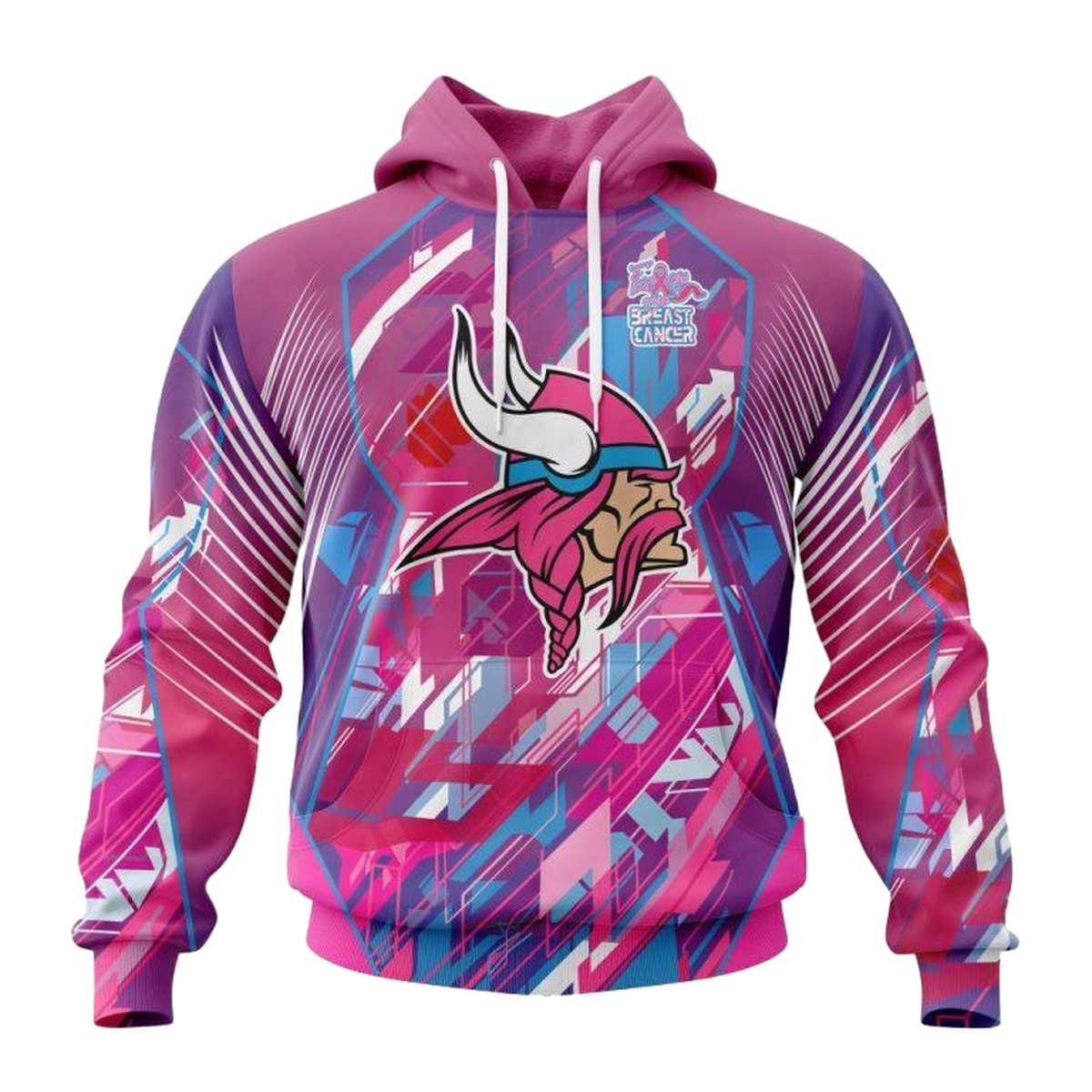Show your support for a great cause while showcasing your love for the Minnesota Vikings with this personalized all-over print hoodie. Designed for fans who want to stand out, this cozy piece is perfect for daily wear or casual outdoor activities during the cooler months. Its unique breast cancer awareness theme makes it a meaningful addition to your wardrobe, allowing you to express your personality while making a statement.