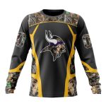 Embrace your love for the Minnesota Vikings with our Personalized Minnesota Vikings Camo Hunting All-Over Printed Sweatshirt. Designed for true fans, this sweatshirt is perfect for game days, outdoor adventures, or simply lounging at home. With its unique camo design, it combines team spirit with a rugged style that stands out in any setting.
