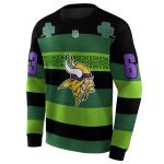 Embrace your unique style with our Personalized Minnesota Vikings Celtic Patterns Green AOP Sweatshirt. Perfect for fans and fashion enthusiasts alike, this cozy piece is a must-have for casual outings, game days, or simply lounging around at home. Its all-over print captures the essence of the Minnesota Vikings while adding a modern twist, making it an ideal addition to your streetwear wardrobe.