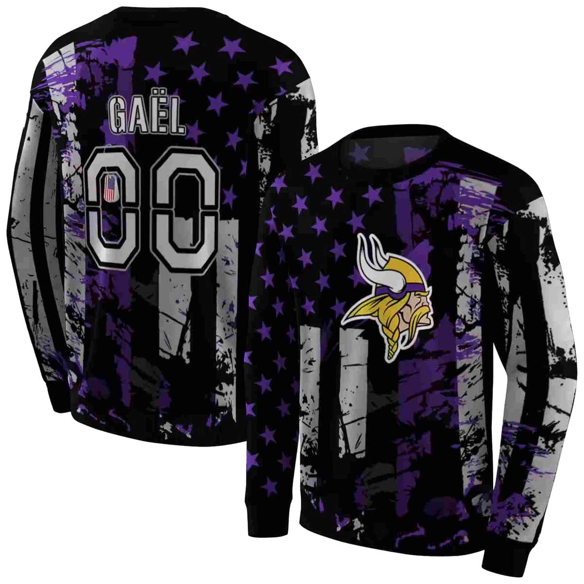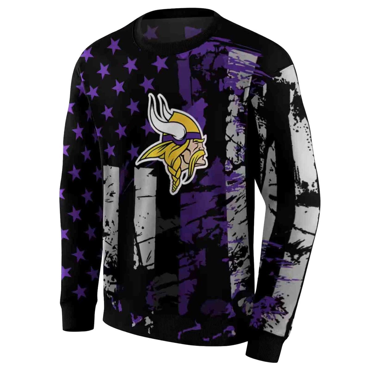 Unleash your team spirit with our Personalized Minnesota Vikings Distressed Flag Purple Black AOP Sweatshirt. Designed for true fans and streetwear enthusiasts alike, this sweatshirt seamlessly blends comfort and style, making it perfect for game days, casual outings, or cozy evenings at home. With its striking all-over print, you’ll stand out while showcasing your love for the Vikings in a unique and eye-catching way.